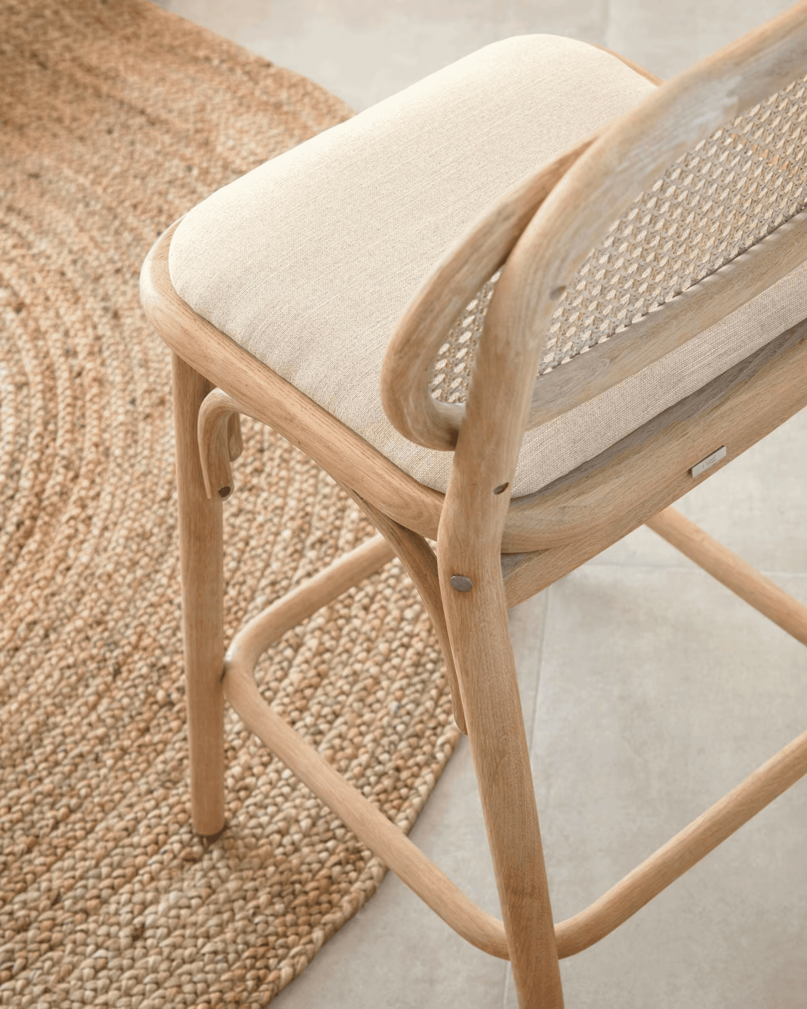 De zitting, bekleed met waterdichte stof met een linnenlook, is niet alleen een praktische oplossing, maar ook een esthetisch accent. De keuze voor stof met een linnenlook geeft de stoel een lichte en subtiele charme, waardoor het niet alleen een functionele zitting is, maar ook een decoratief element.