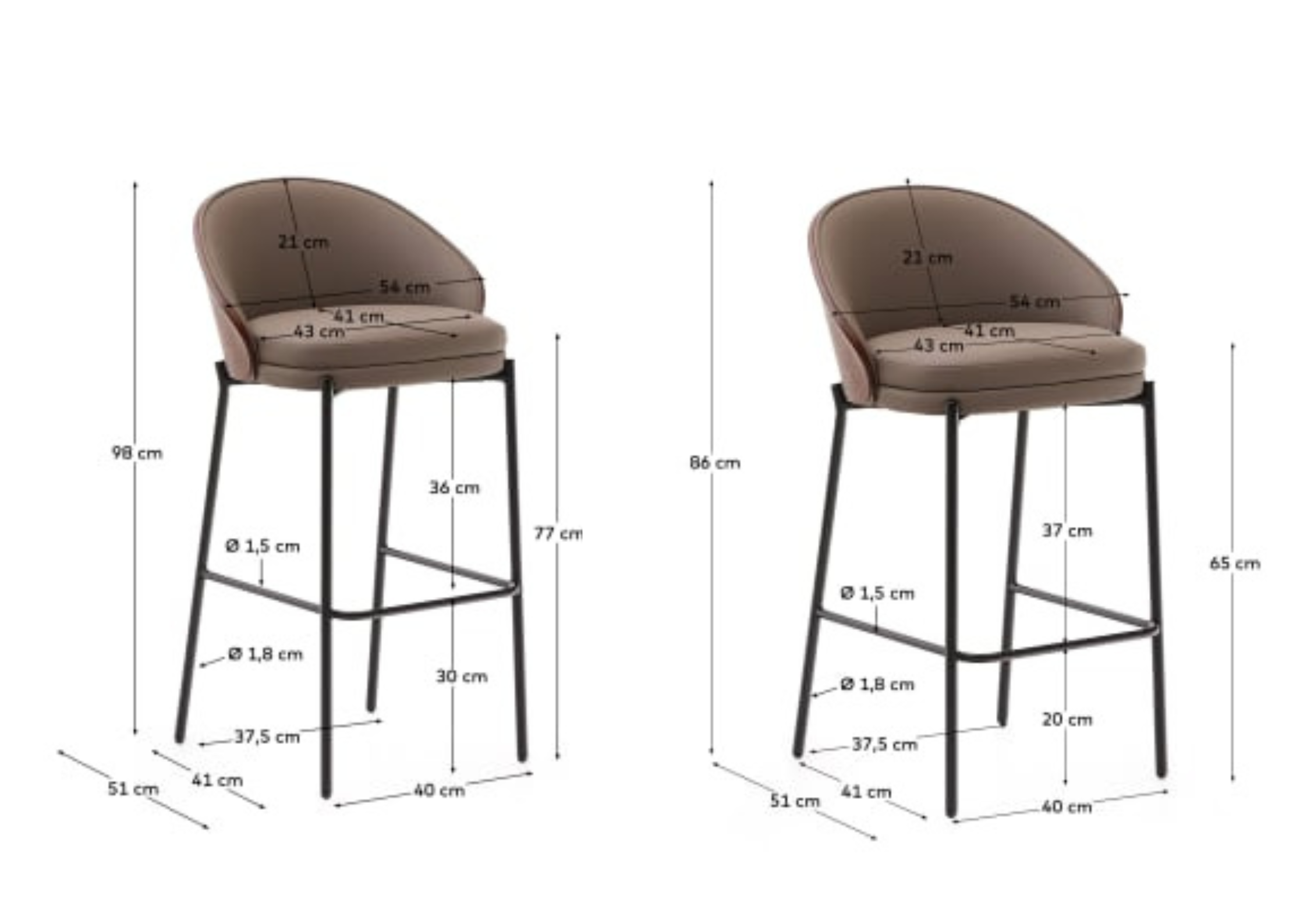Barkruk Eamy is een combinatie van klassiek en modern. De rugleuning, gemaakt van esdoornfineer met een walnootafwerking, voegt warmte en elegantie toe. De stevige metalen structuur, zwart gepoedercoat, zorgt voor stabiliteit en duurzaamheid van de stoel.