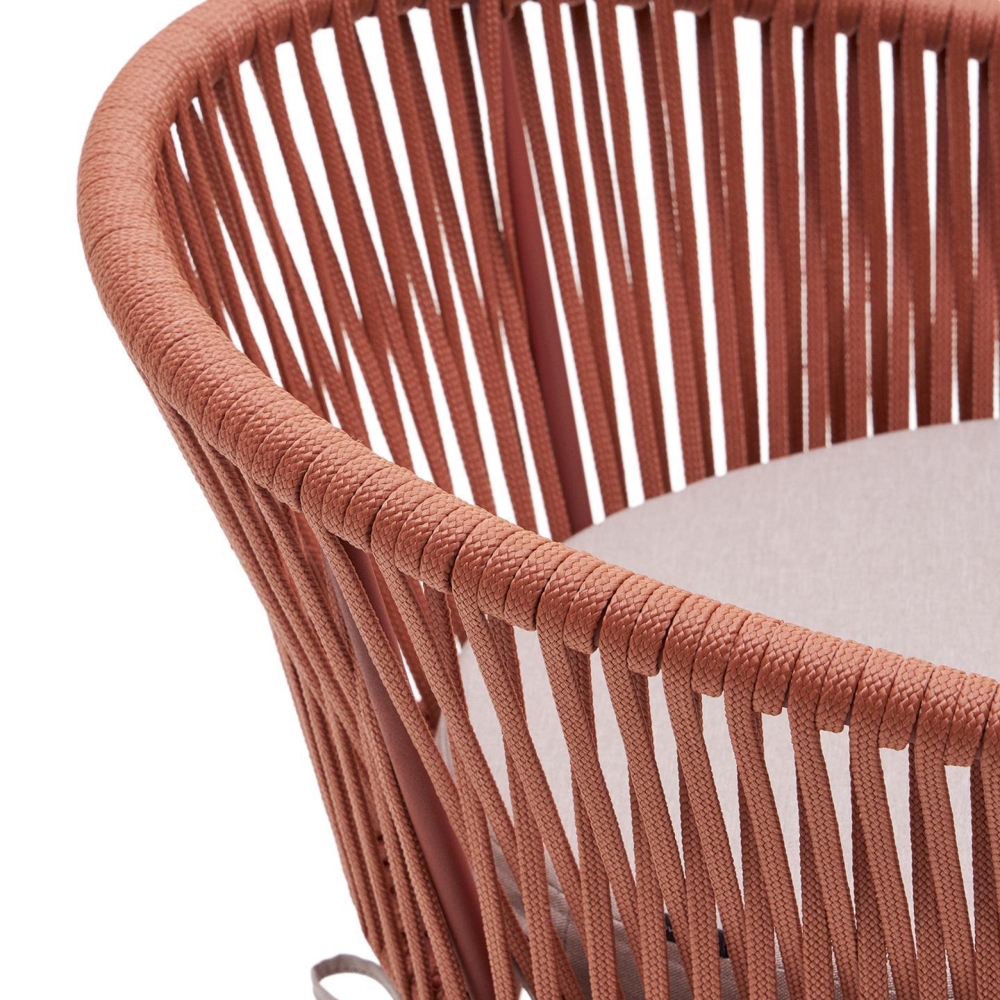 Odkryj doskonałe połączenie stylu i funkcjonalności dzięki krzesłu barowemu Yanet, które wnosi modny akcent zarówno do Twojej kuchni, jak i przestrzeni na świeżym powietrzu. Z ręcznie plecionym siedziskiem z liny w modnym kolorze terakoty, krzesło Yanet zapewnia nie tylko wyjątkowy wygląd, ale również wygodę i trwałość.