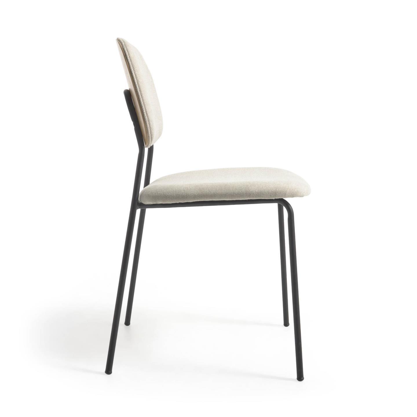 De multiplex rugleuning in een natuurlijke eiken afwerking geeft de designstoel Benilda een gevoel van lichtheid en natuurlijke charme. De metalen constructie met een matte, zwart geverfde afwerking zorgt niet alleen voor stevigheid en duurzaamheid, maar geeft het meubel ook een moderne en stijlvolle uitstraling.