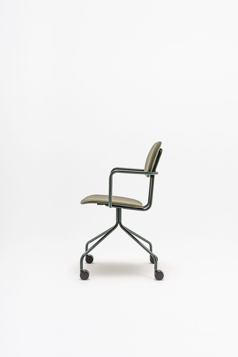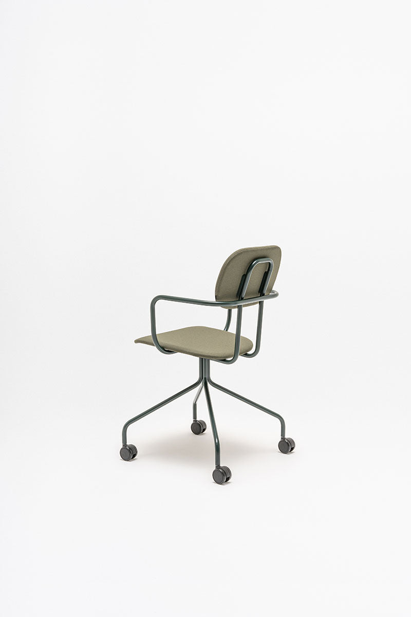Bureau stoel New School is een moderne herinterpretatie van de klassieke vorm van de schoolstoel, die vele configuraties biedt die zich aanpassen aan verschillende kantoorruimtes. De gestoffeerde versie zorgt voor maximaal comfort en functionaliteit, waardoor hij perfect is voor zowel kantoren als vergaderruimtes. De vierpotige basis met wielen maakt vrij bewegen mogelijk, wat het aanpassen van de stoelpositie aan de actuele behoeften van de gebruiker vergemakkelijkt. Bovendien verhogen optionele armleuningen het comfort tijdens lange werkuren.