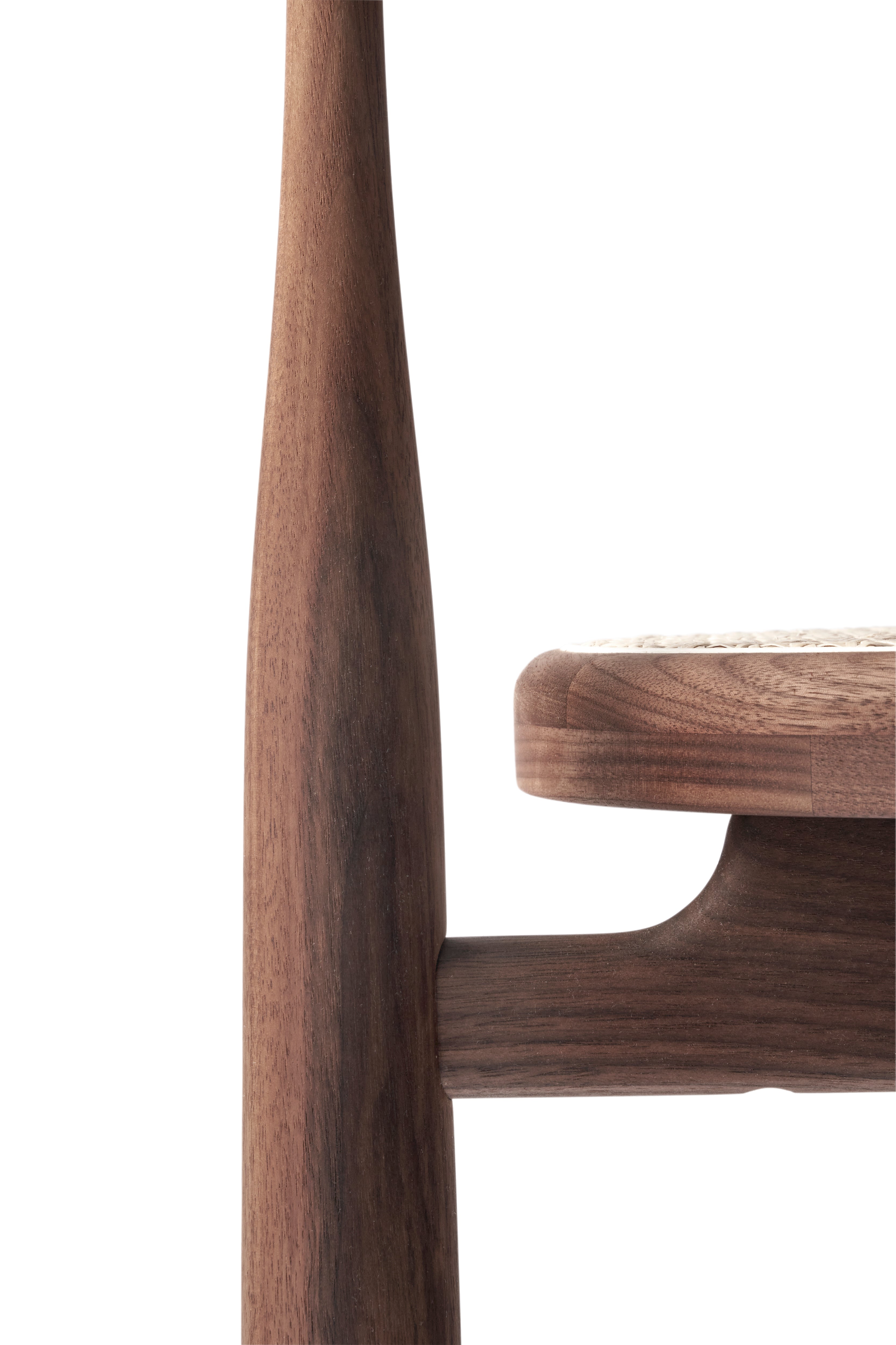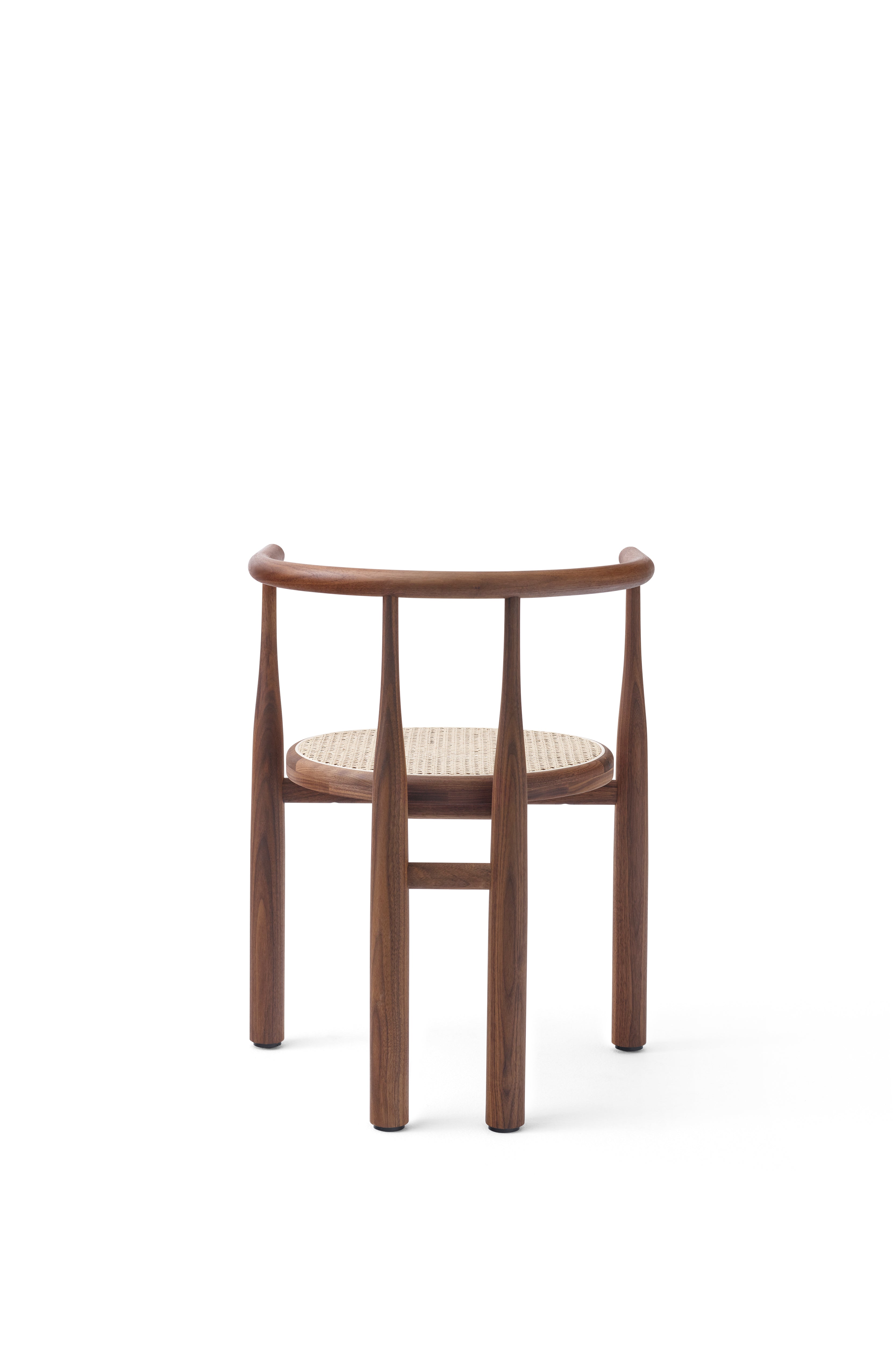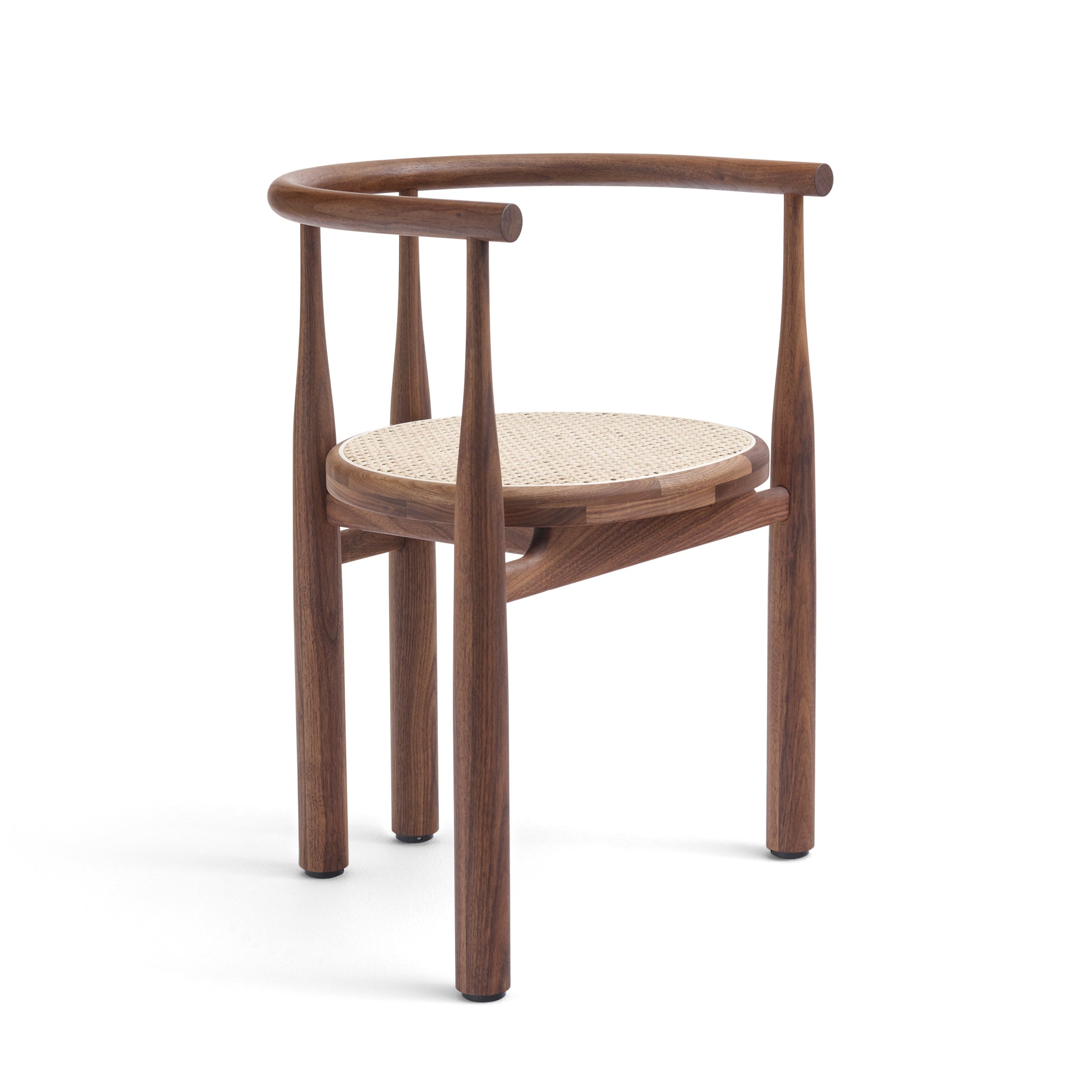 De nieuwe versie van de stoel Bukowski valt op door de zitting, gemaakt van Weense vlechtwerk, die hem subtiliteit en lichtheid verleent. In combinatie met het stevige frame van notenhout krijgt de stoel een elegante, natuurlijke uitstraling, die perfect balanceert tussen klassiek en modern.