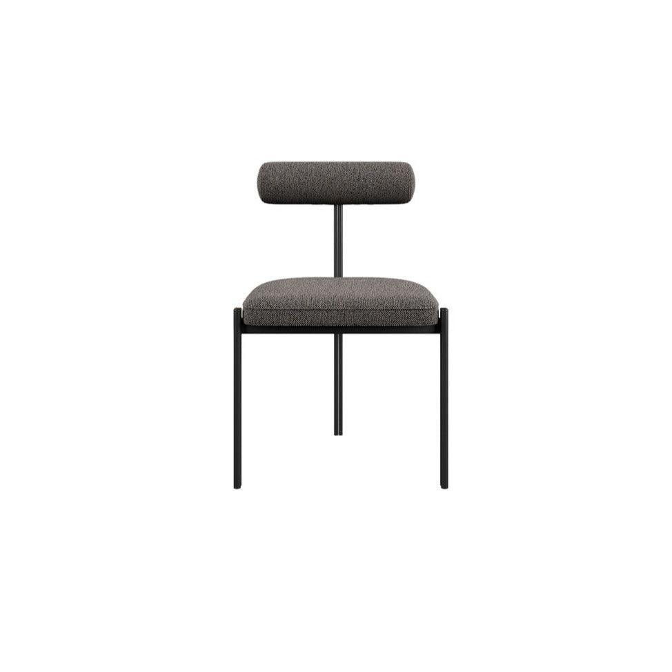Grijze stoel Caillou is een elegante en comfortabele zitplaats, die zich onderscheidt door de lage en brede rugleuning. Deze unieke vorm is niet alleen herkenbaar, maar verhoogt ook het gebruiksgemak, waardoor de rugleuning perfect steun biedt en het lichaam omarmt.