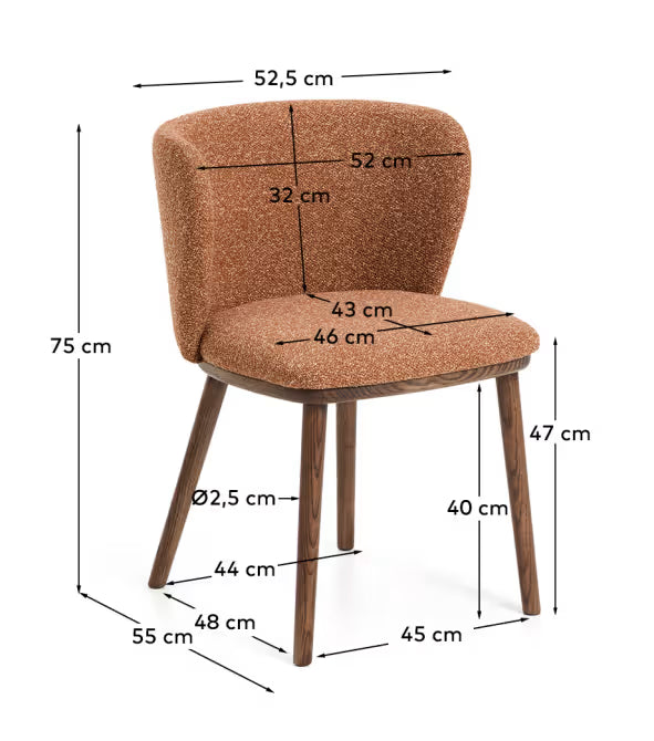 Stoel CISELIA baksteen chenille met een donkere essen basis