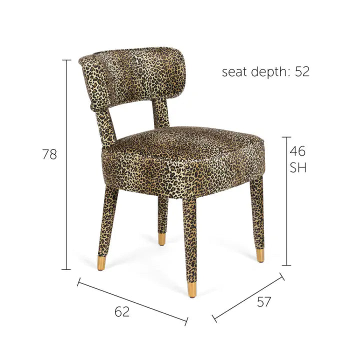 Stoel Claws Out is een meubelstuk dat niet onopgemerkt zal blijven. Bekleed met een wild, panterprint patroon van polyester, combineert het de moed van design met een klassieke, minimalistische vorm. Dankzij deze balans wordt het niet alleen een functionele zitplaats, maar ook een opvallend accent in uw interieur. Het stabiele frame van multiplex, No-Sag veren en brandwerende schuim zorgen voor comfort, terwijl de poten van massief rubberhout, afgewerkt met messing voetjes, het een elegante uitstraling geven.