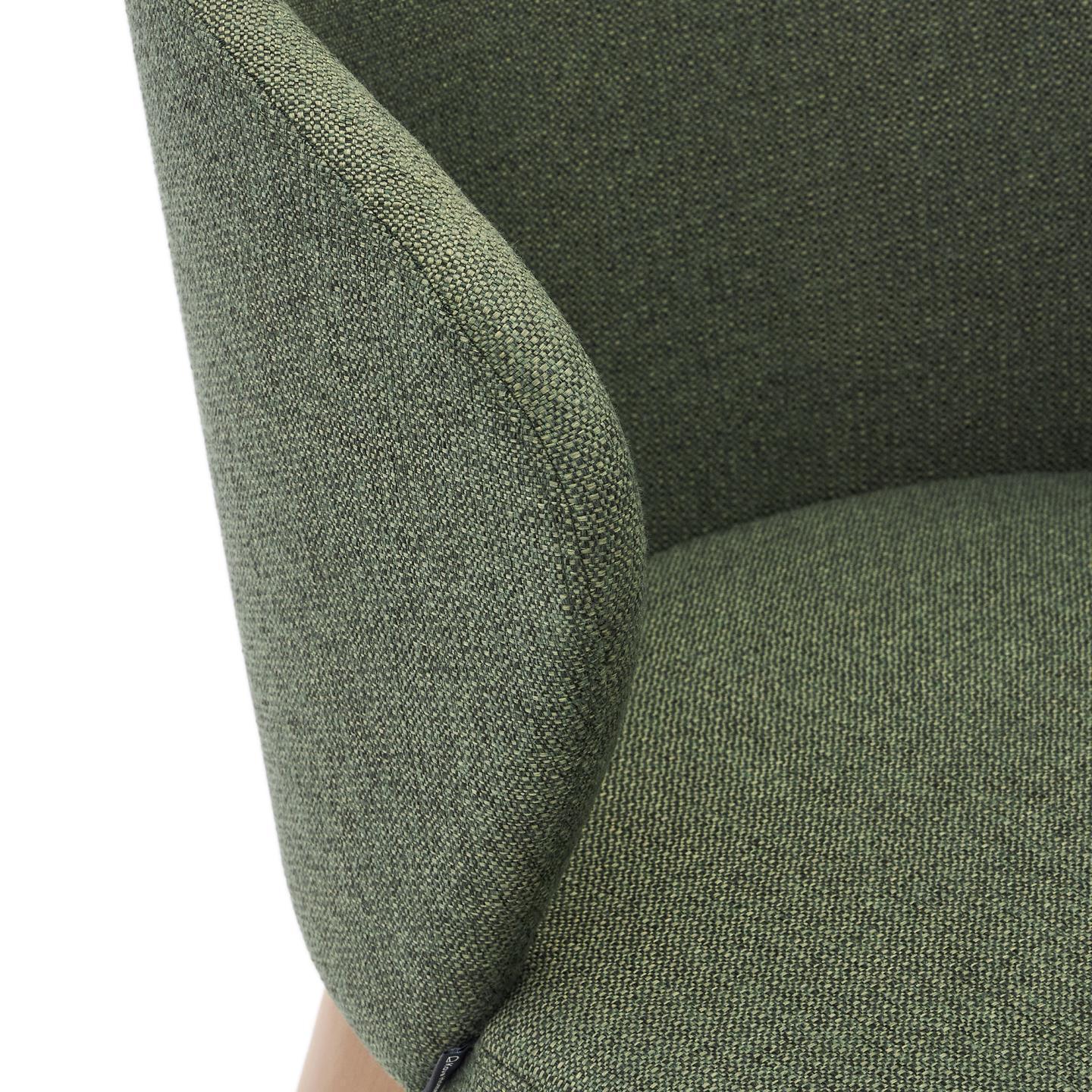 Deze groene stoel met een lichte basis is ook een voorbeeld van zorg voor het milieu. Lokale productie in Europa, gebaseerd op traditionele ambachtelijke processen, draagt bij aan het verminderen van CO2-uitstoot, wat een positieve impact heeft op het milieu. Het hout dat voor de productie wordt gebruikt, heeft een FSC-certificaat, wat garandeert dat het afkomstig is uit duurzame bronnen, en de interne structuur is gemaakt van E0-hout met een lage formaldehyde-emissie, wat zorgt voor de gezondheid van de gebruikers en de negatieve impact op het milieu minimaliseert.