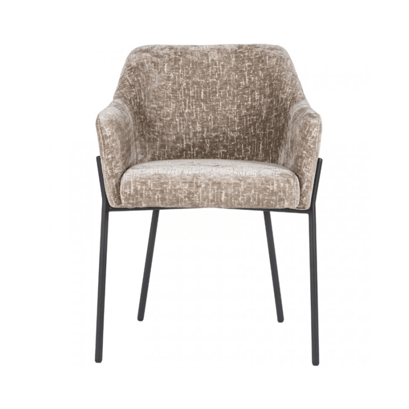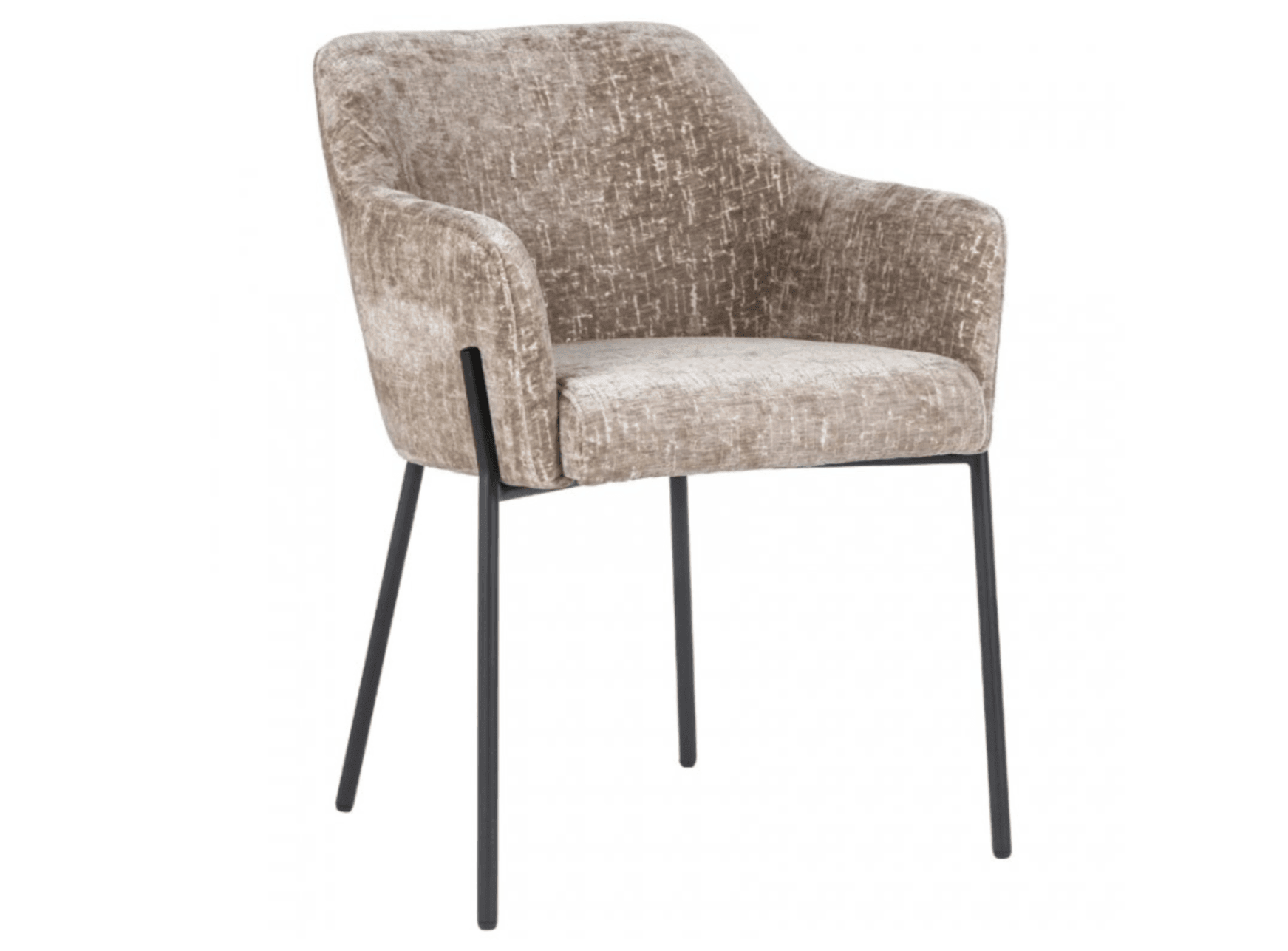 Slanke, metalen poten in zwart vormen zowel een contrast als een harmonieuze aanvulling op de karamelkleurige bekleding. Hun minimalistische ontwerp voegt moderniteit toe aan de stoel Fay, terwijl het in balans blijft met zijn elegante karakter. De metalen constructie ziet er niet alleen esthetisch uit, maar biedt ook stevigheid en duurzaamheid.