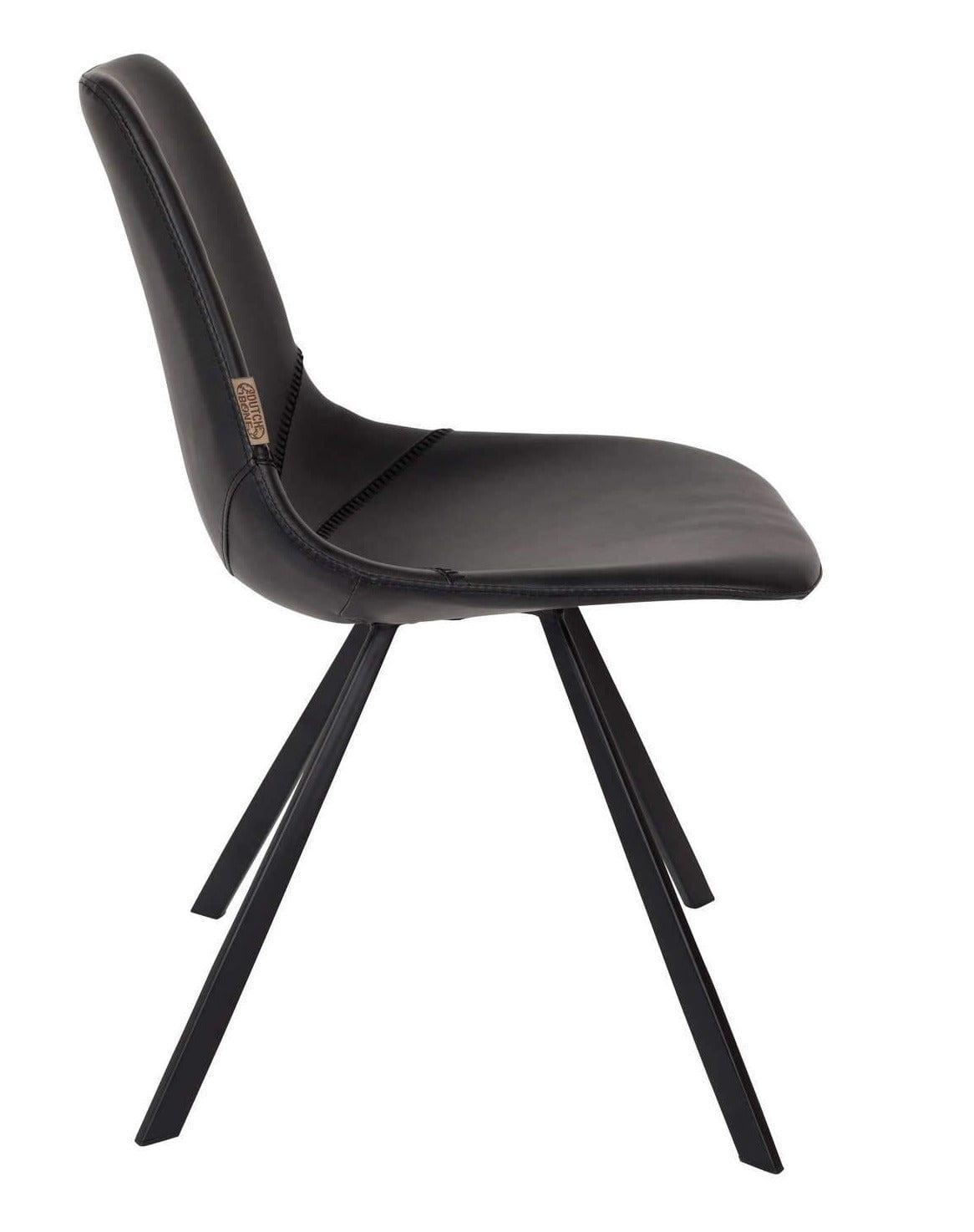 Franky is een model stoelen dat bijna elk interieur een vleugje stijl en klasse geeft. De elegante, minimalistische vorm is aangevuld met zwarte kunstleer, wat het ontwerp een industriële en loftachtige uitstraling geeft. Franky is een geweldig cadeau-idee voor liefhebbers van de avant-garde.