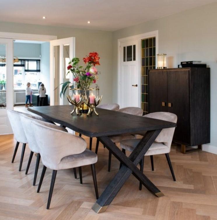Naast de visuele kwaliteiten biedt de stoel Indigo ook gebruikscomfort. De fluwelen bekleding zorgt voor zachtheid en plezier tijdens het zitten, waardoor lange en comfortabele maaltijden met familie en vrienden mogelijk zijn. De ergonomische vorm van de stoel benadrukt zijn functionaliteit en maakt het zitten erop een waar genoegen.