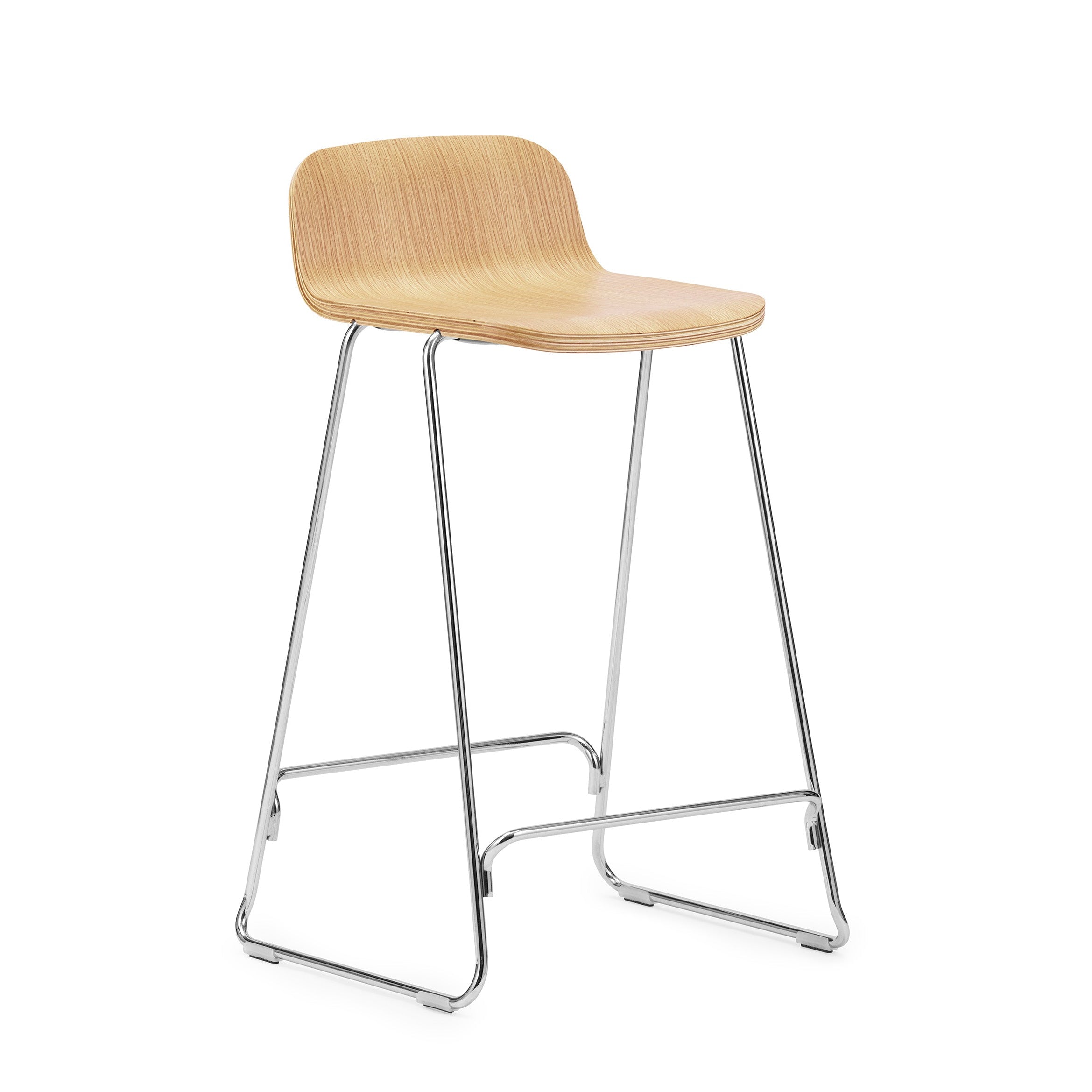 Barkruk met rugleuning JUST natuurlijk eiken met verchroomde voet