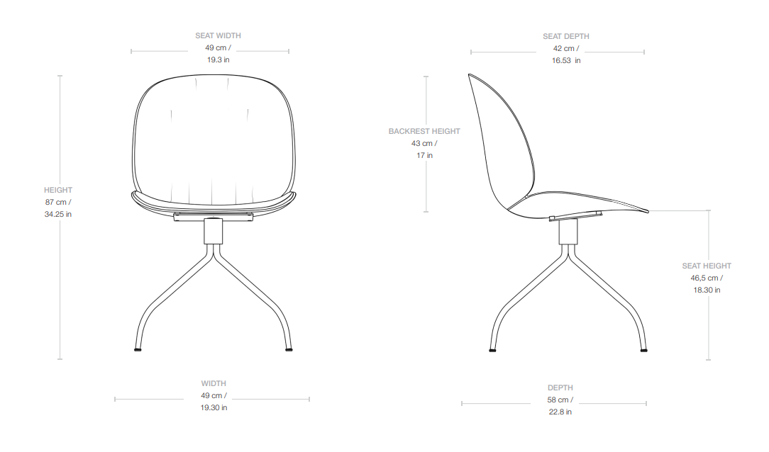 Draaistoel Beetle Soft is een sensuele herinterpretatie van een modern designicoon, waarbij comfort en zachtheid centraal staan. Met behoud van de kenmerkende silhouet en stevige constructie van het origineel, heeft het een afwerking zonder bies en een meer ontspannen uitstraling. Hierdoor straalt het ontwerp gezelligheid uit en nodigt het uit tot dagelijks gebruik, perfect aansluitend bij de behoeften van hedendaagse interieurs die gericht zijn op comfort.