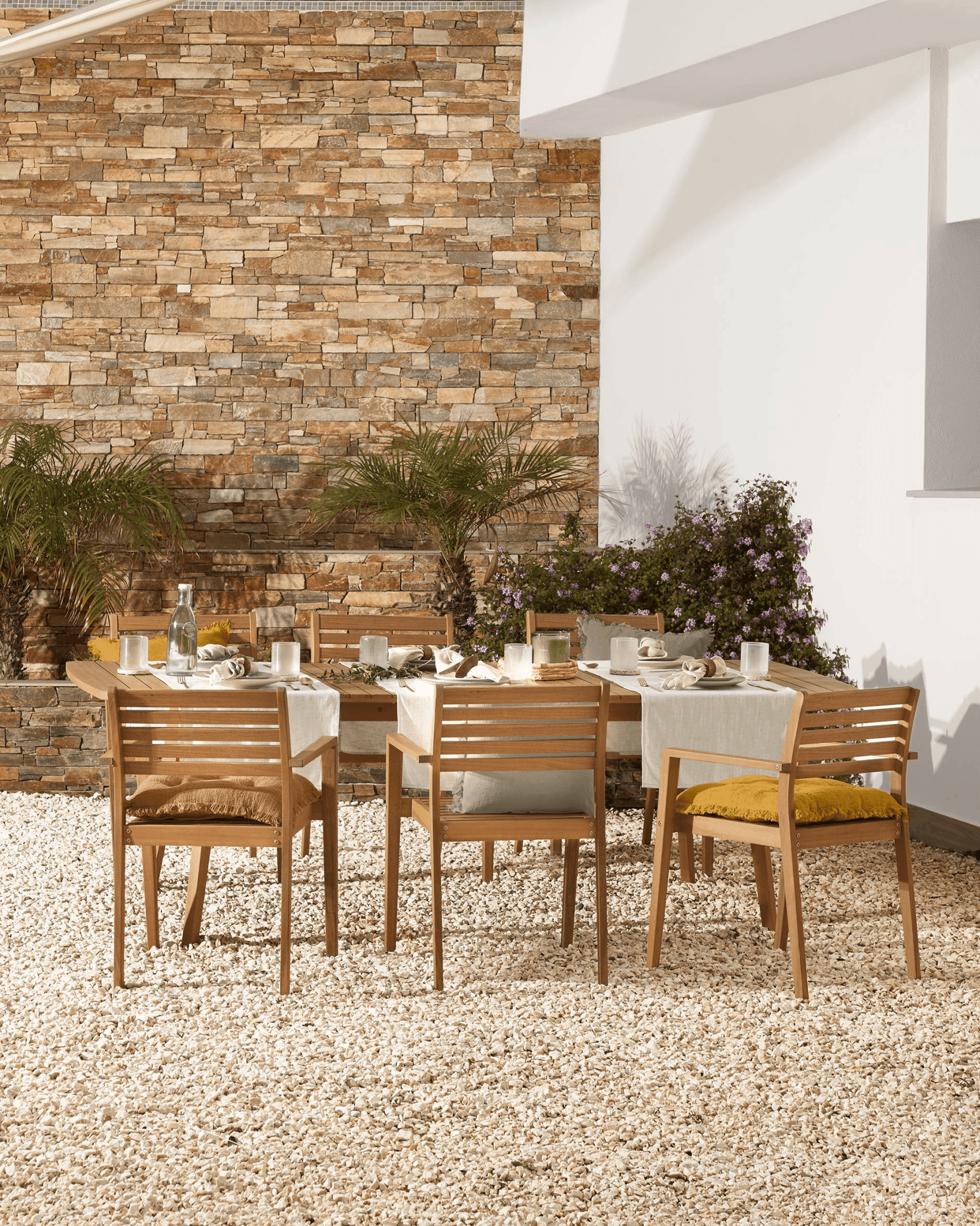 Is er iets beter dan de vreugde van tijd doorbrengen in de buitenlucht, genietend van de omringende natuur? Tuinstoel Hanzel biedt niet alleen comfort, maar ook esthetiek en een ecologische benadering. Gemaakt van massief, duurzaam acaciahout, deze stoelen betoveren niet alleen met hun natuurlijke charme, maar zorgen ook voor het milieu. Hun stevige constructie garandeert duurzaamheid voor vele jaren.