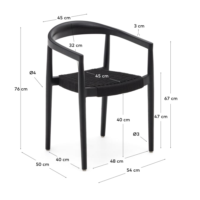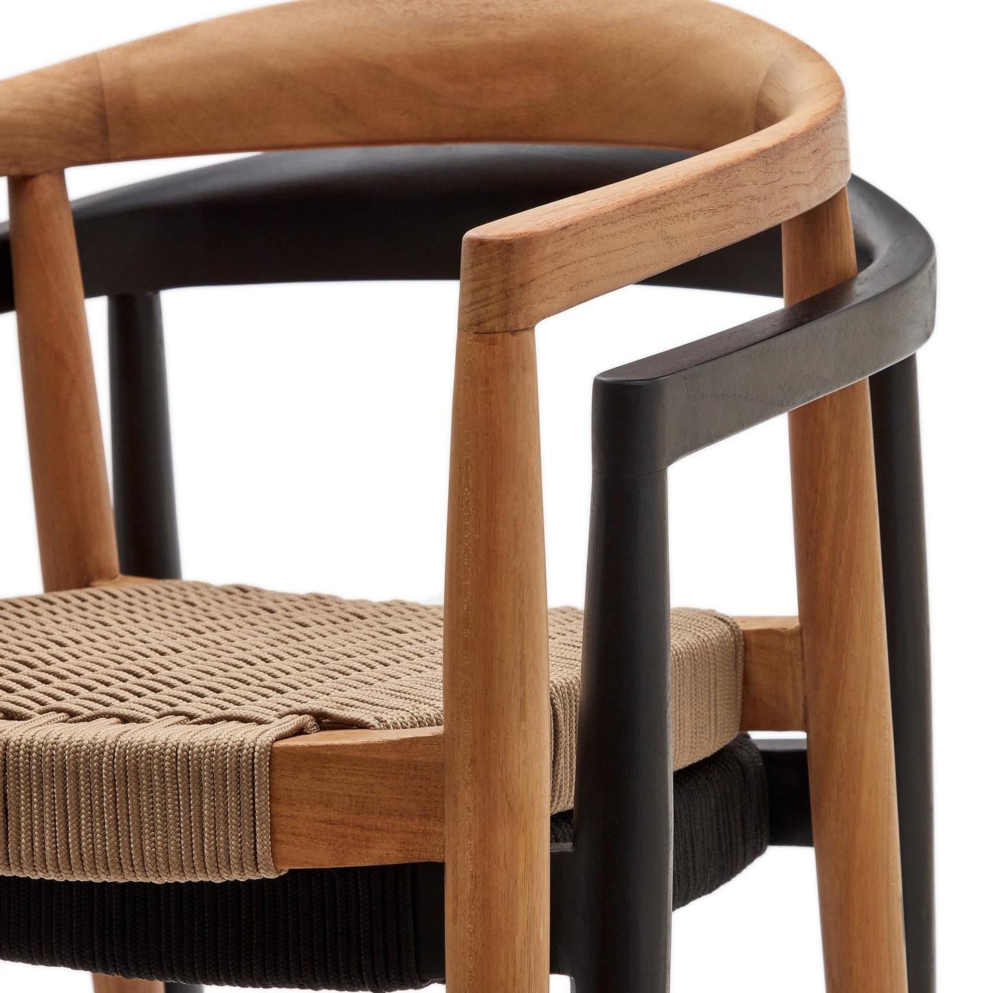 Tuinstoel YDALIA zwart teakhout met zwarte touw