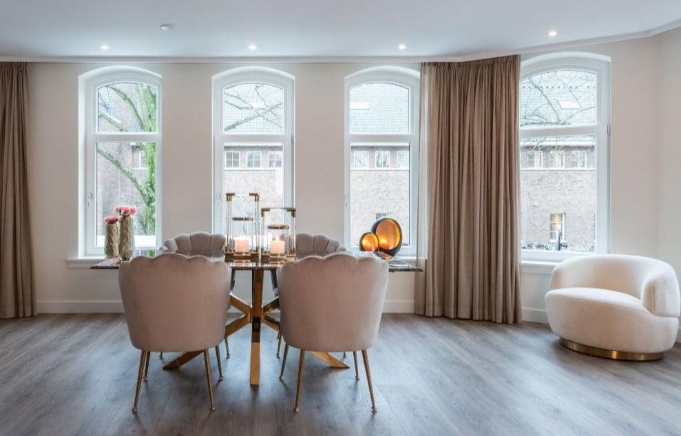 Stoel Pippa is een ware ode aan luxe en stijl. De fluwelen bekleding in een elegante beige tint geeft het een buitengewoon verfijnde en moderne uitstraling. Deze zachte stof, gemaakt van 100% polyester, nodigt letterlijk uit om aangeraakt te worden en biedt ongeëvenaard comfort tijdens lange uren zitten. Fluweel is ook uiterst gemakkelijk te reinigen, wat de stoel tot een praktische en comfortabele keuze maakt voor vele jaren.