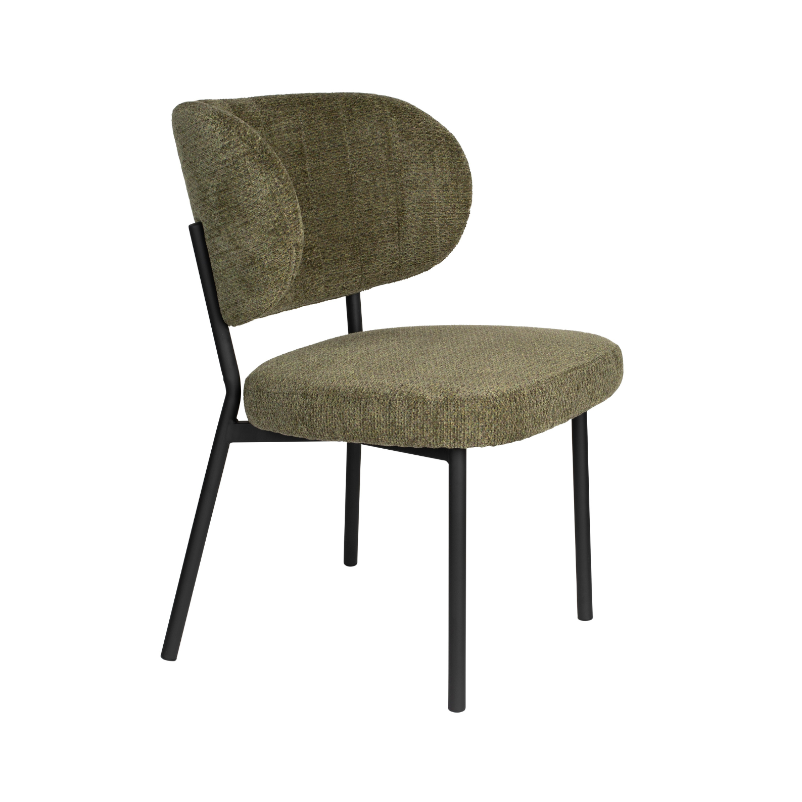 Het minimalistische ontwerp van de Sanne-stoel maakt het een veelzijdige aanvulling voor verschillende ruimtes, zoals de eetkamer, woonkamer of kantoor. De diepe, olijfgroene tint brengt een vleugje rust en natuur in de interieurs, terwijl het tegelijkertijd de elegantie en functionaliteit benadrukt.
