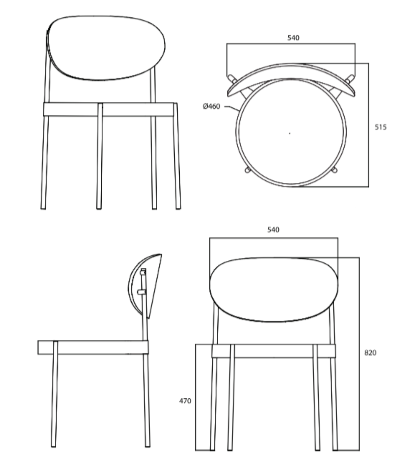 Materiał: Drewno z certyfikatem FSC, elastyczna taśma w siedzisku, pianka, rama metalowa pokryta mosiądzem, nakładki filcowe antypoślizgowe