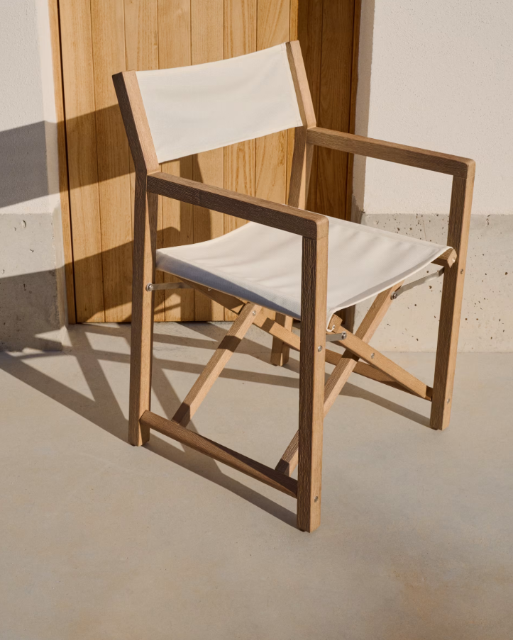 Vilara is een opvouwbare stoel met armleuningen die natuurlijk acaciahout harmonieus combineert met duurzame stof, wat comfort en duurzaamheid in elke buitenruimte garandeert. Dankzij het ergonomische ontwerp en de hoogwaardige materialen is het een uitstekende keuze voor het terras, balkon of de tuin.
