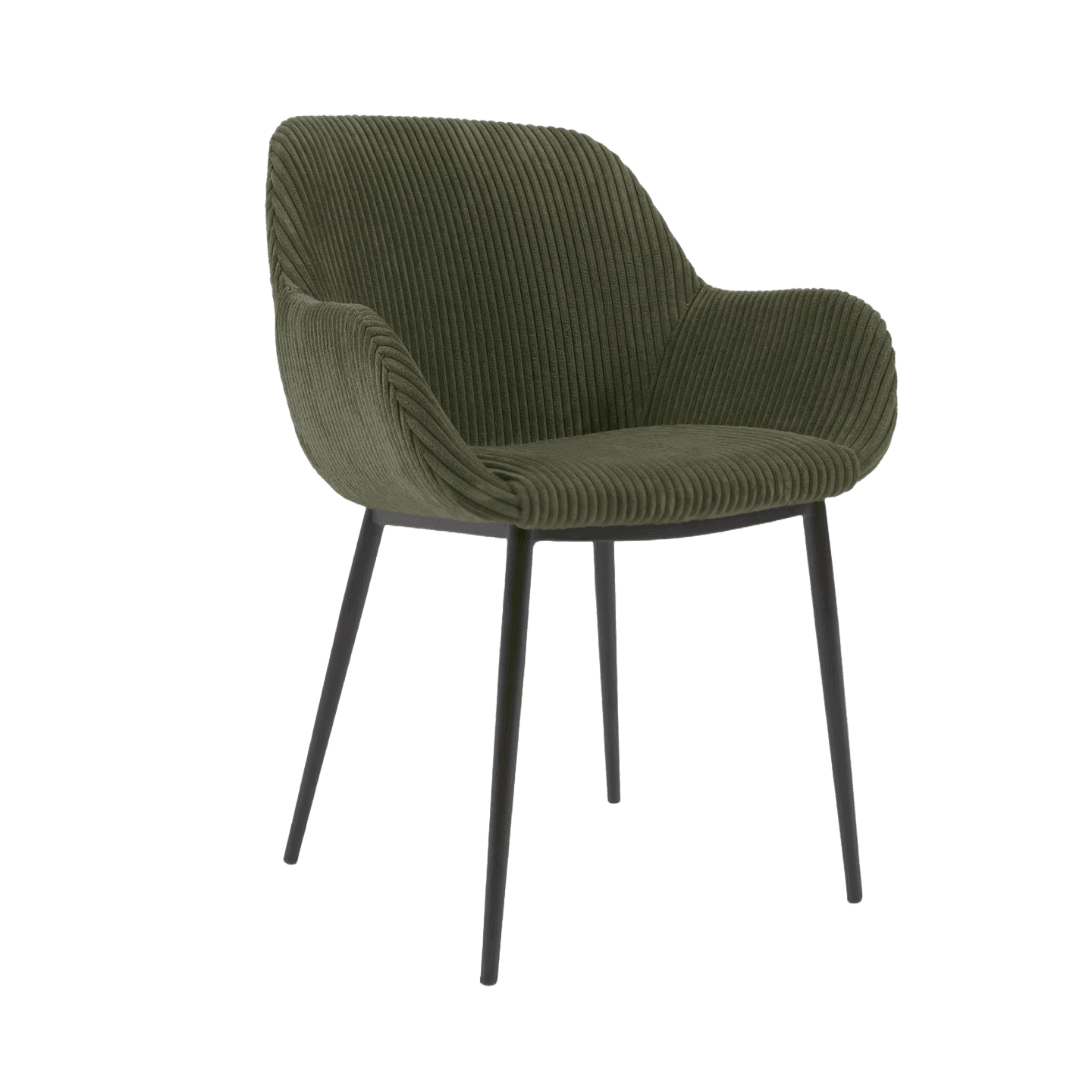Krzesło sztruksowe KONNA ciemnozielony z czarną podstawą La Forma    Eye on Design