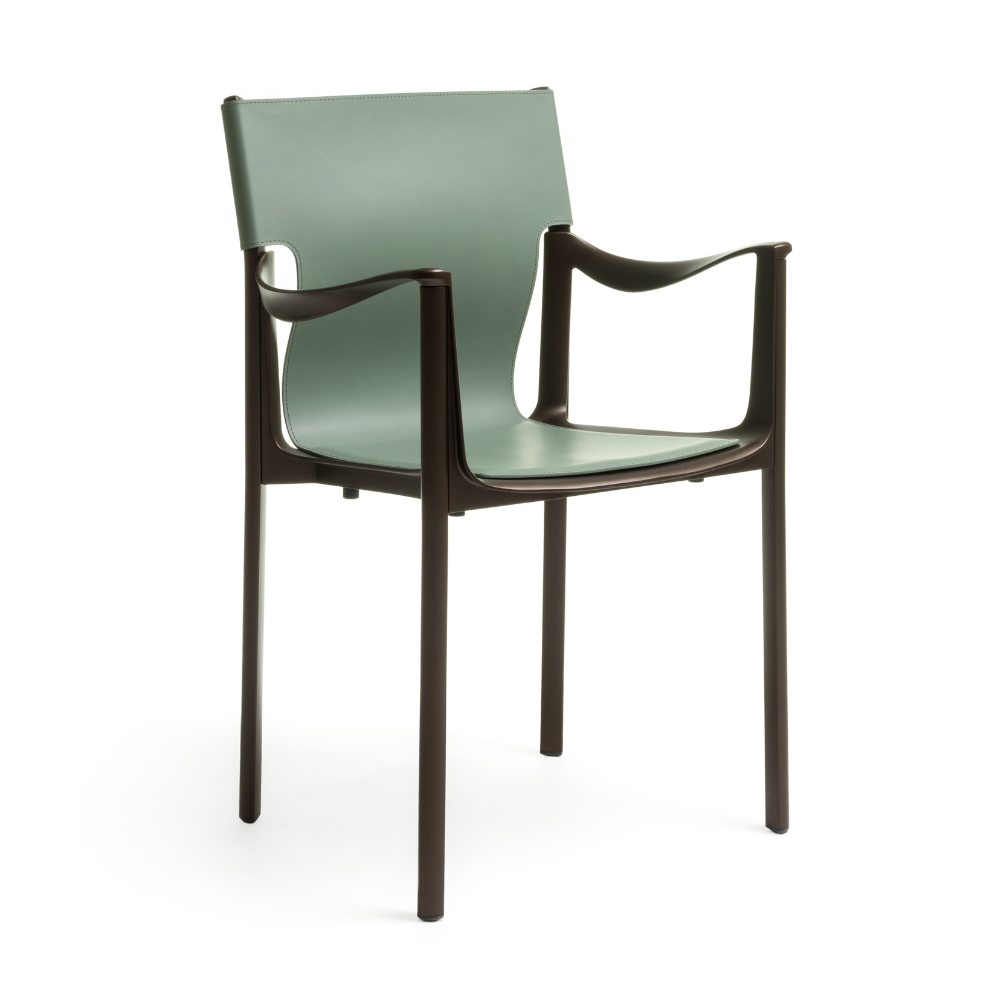 Stoel VENETIË groene leer met donkerbruine basis
