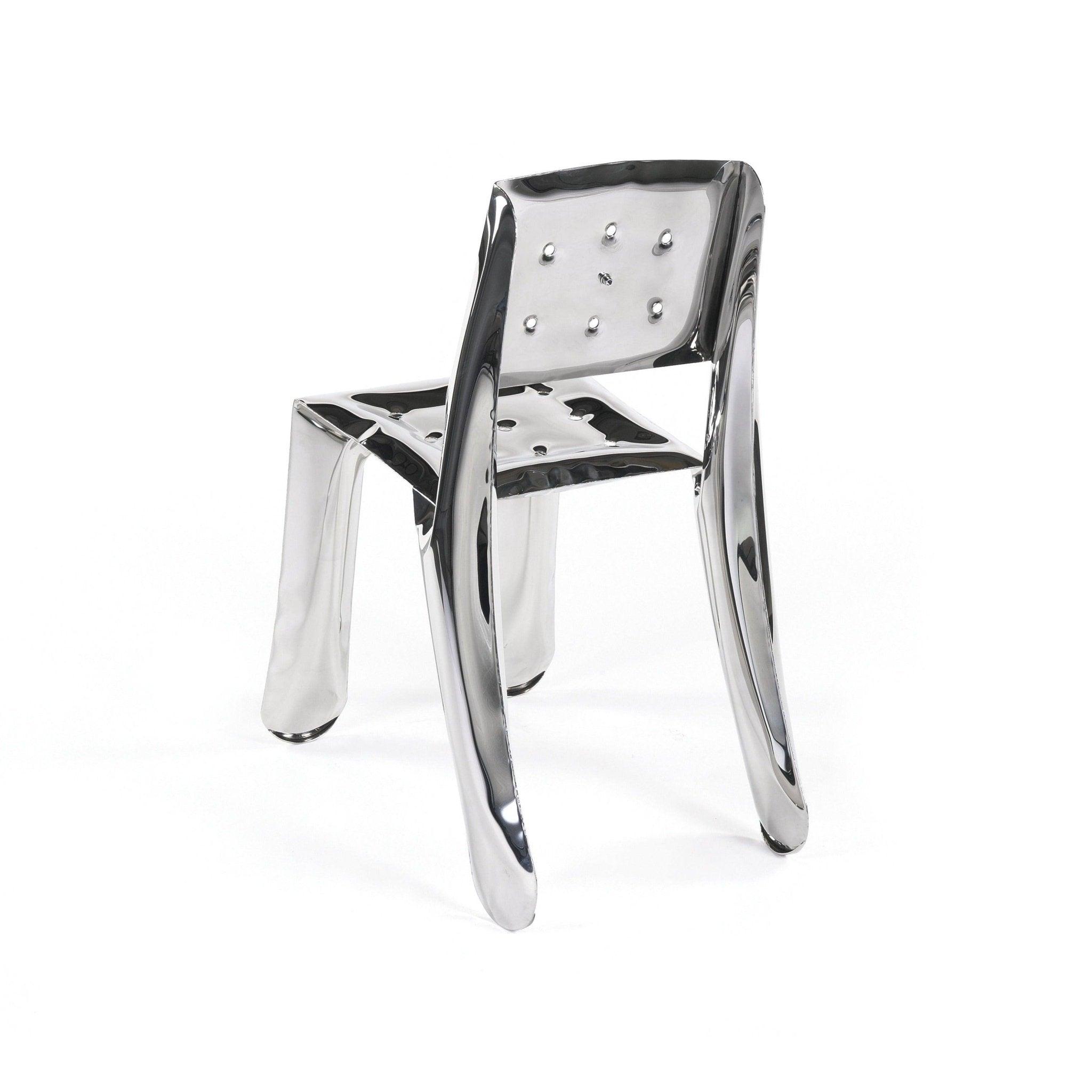 Stoel Chippensteel 0.5 in staalgrijs is een uitdrukking van de mystieke dans tussen de smid en de kunstenaar. Net als staal, dat onder gecontroleerde vervorming wordt gebracht, neemt dit bijzondere object onvoorspelbare vormen aan die bloeien als de knoppen van lentebloemen.