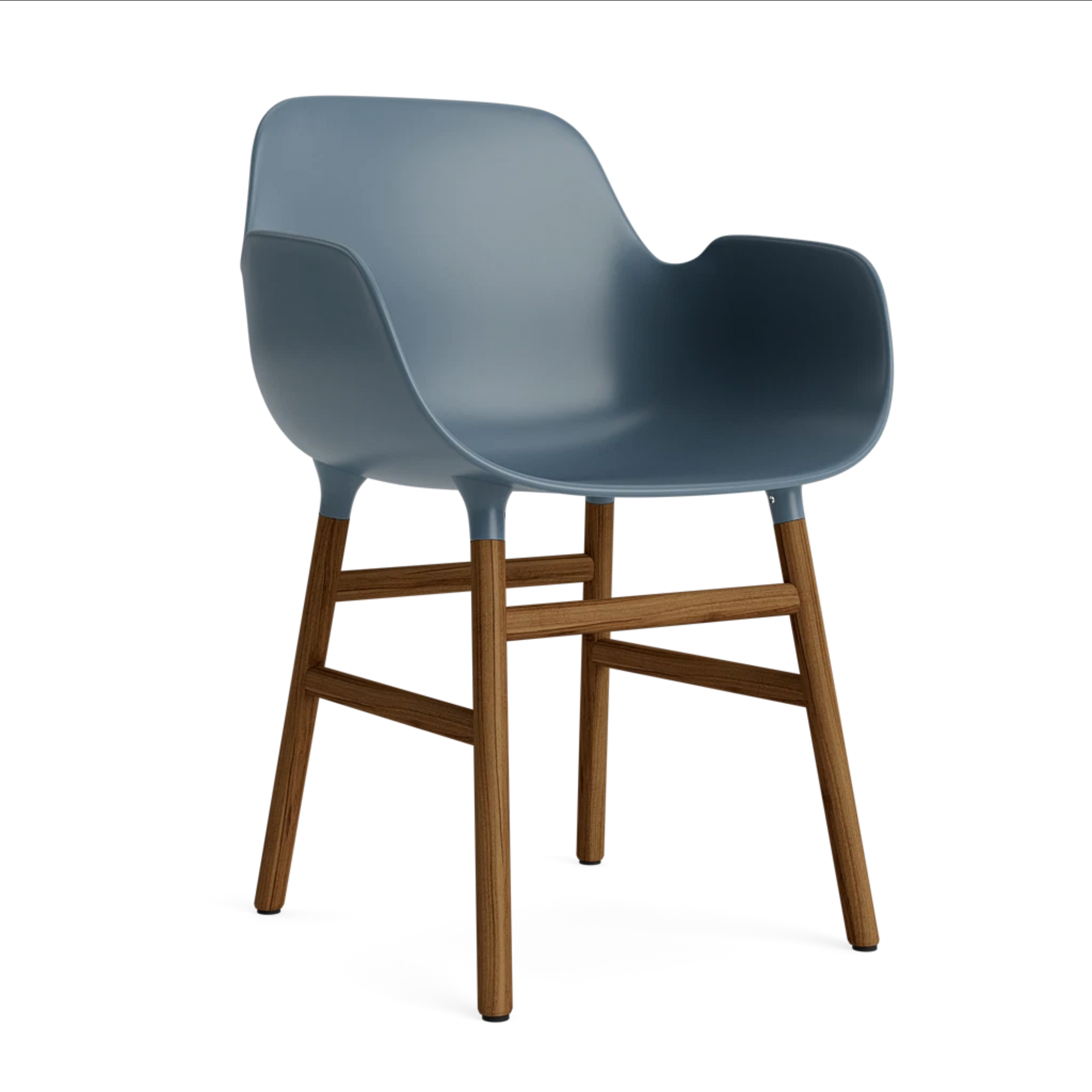 Stoel met armleuningen FORM zeeblauw met notenhouten basis
