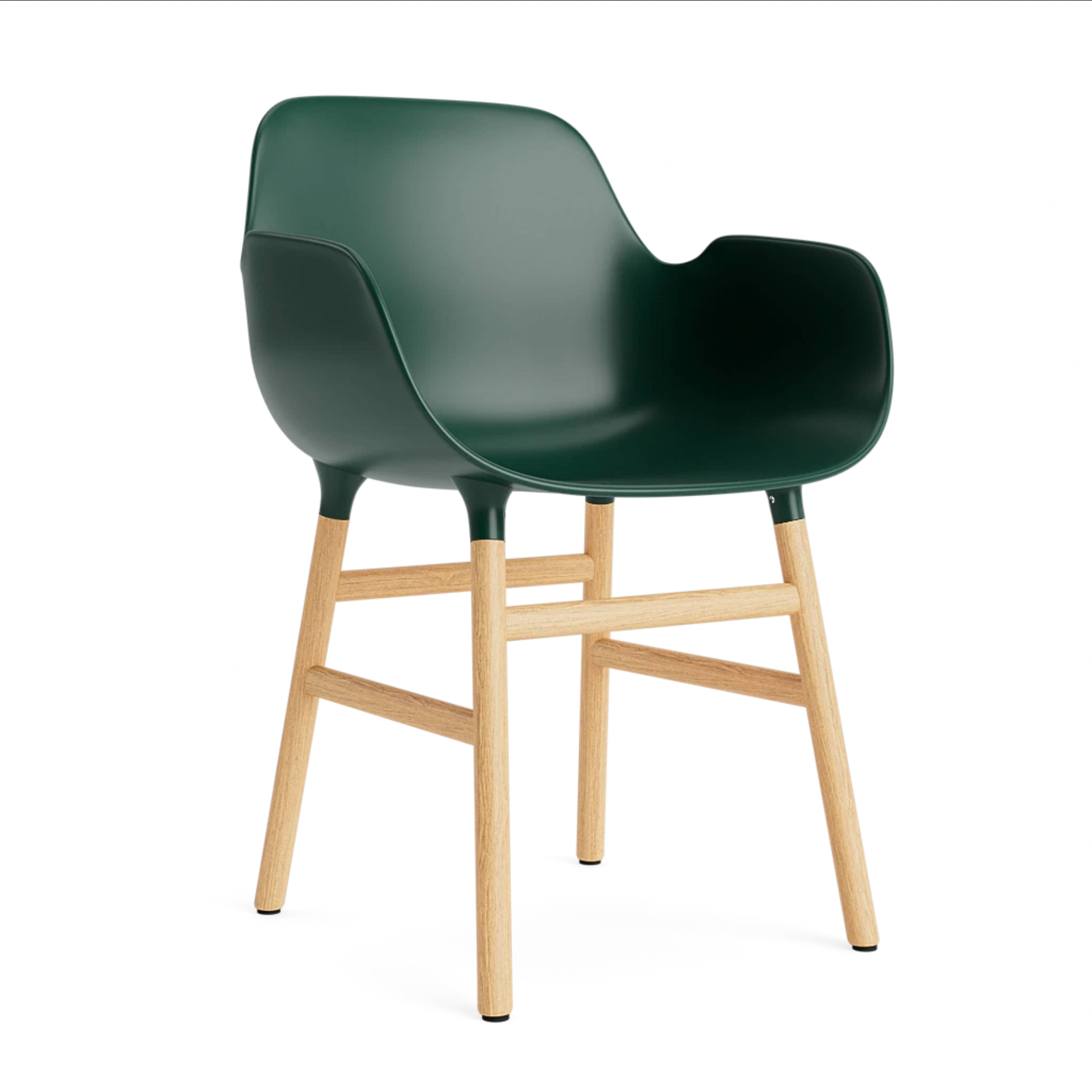 Stoel met armleuningen FORM groen met eikenhouten basis