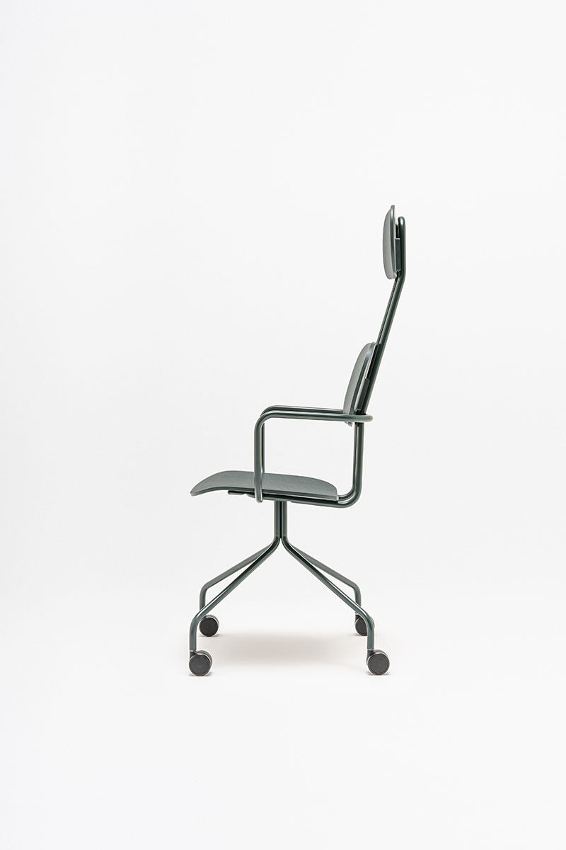 Bureau stoel met hoofdkussen New School, ontworpen door Studio Form Us With Love, trekt de aandacht met zijn moderne vorm van een dubbel rugleuning. Deze versie biedt ondersteuning voor de hele rug, en het hoofdkussen verhoogt het gebruiksgemak nog verder. Dankzij de wielen en armleuningen is de stoel New School niet alleen comfortabel, maar ook functioneel, waardoor u vrij kunt bewegen en een comfortabele houding kunt aannemen, zelfs tijdens langere periodes van zitten.