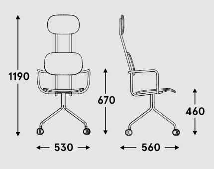 Bureau stoel met hoofsteun New School, ontworpen door Studio Form Us With Love, trekt de aandacht met zijn moderne vormgeving van dubbele rugleuning. Deze versie biedt ondersteuning voor de hele rug, en de hoofsteun verhoogt het gebruikscomfort nog verder. Dankzij de wielen en armleuningen is de stoel New School niet alleen comfortabel, maar ook functioneel, waardoor u vrij kunt bewegen en een comfortabele houding kunt aannemen, zelfs tijdens langere periodes van zitten.