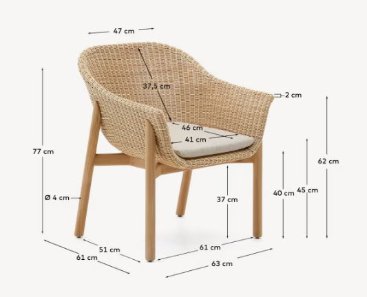 Stoel Galea is een unieke combinatie van elegant vakmanschap en moderne duurzaamheid. De constructie van massief teakhout met FSC™ 100% certificaat benadrukt niet alleen de natuurlijke schoonheid van het materiaal, maar garandeert ook een duurzame en verantwoorde bosbouw. De zitting en rugleuning zijn gemaakt van handgeweven synthetisch riet, dat wilgentakken imiteert, terwijl het tegelijkertijd een hoge weerstand tegen weersomstandigheden en onderhoudsgemak behoudt.