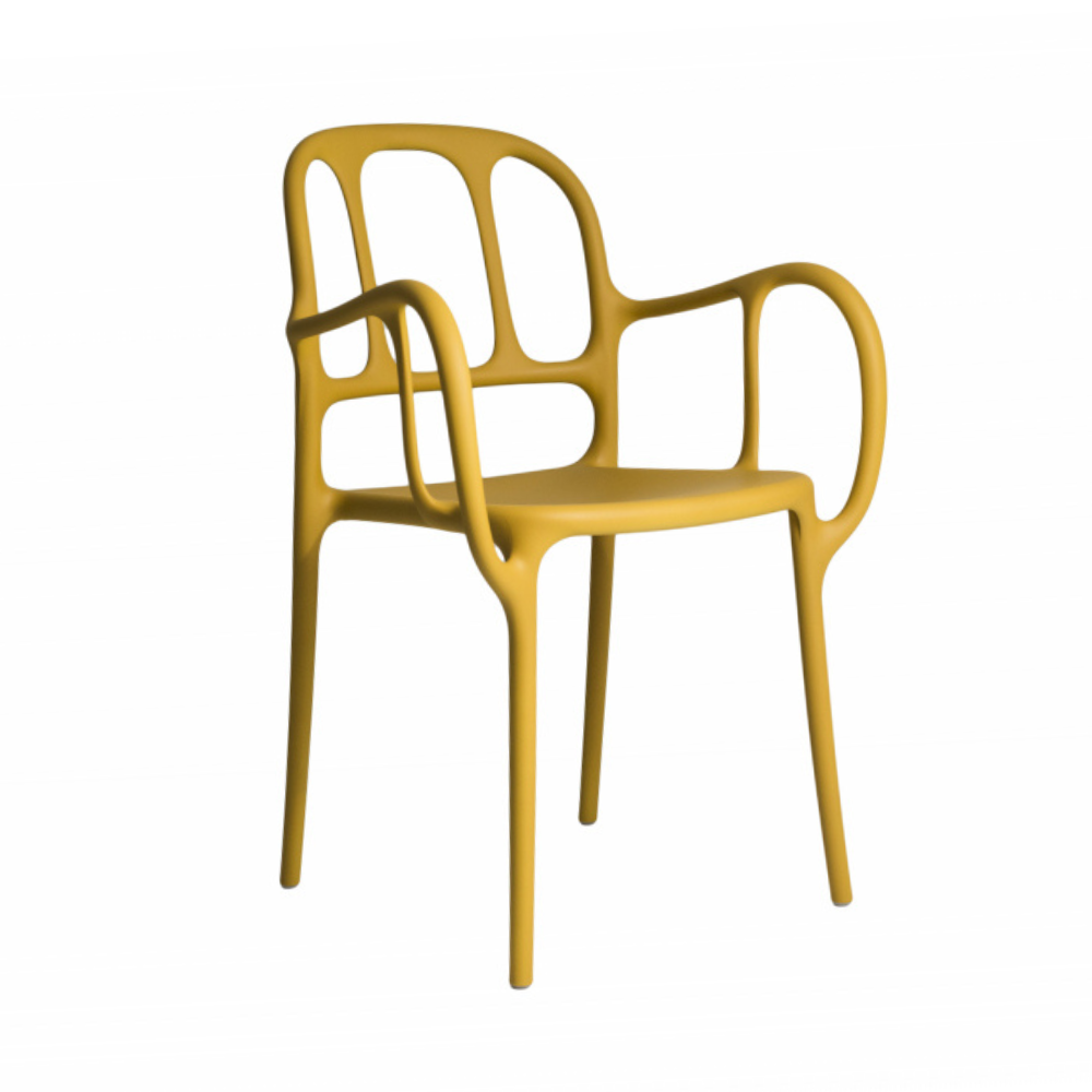 Buitenstoel Mila is een harmonieuze combinatie van klassiek design en moderne functionaliteit. Ontworpen met het oog op buitenruimtes, is het ideaal voor terrassen, balkons of tuinen. Dankzij de elegante vorm en verfijnde details kan het ook met succes binnen worden gebruikt – in de eetkamer, keuken of commerciële ruimtes. Het ergonomisch gevormde rugleuning en armleuningen zorgen voor optimaal gebruikscomfort.