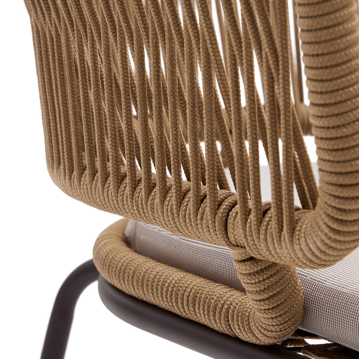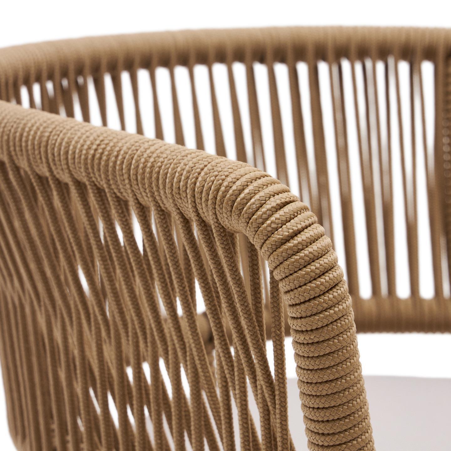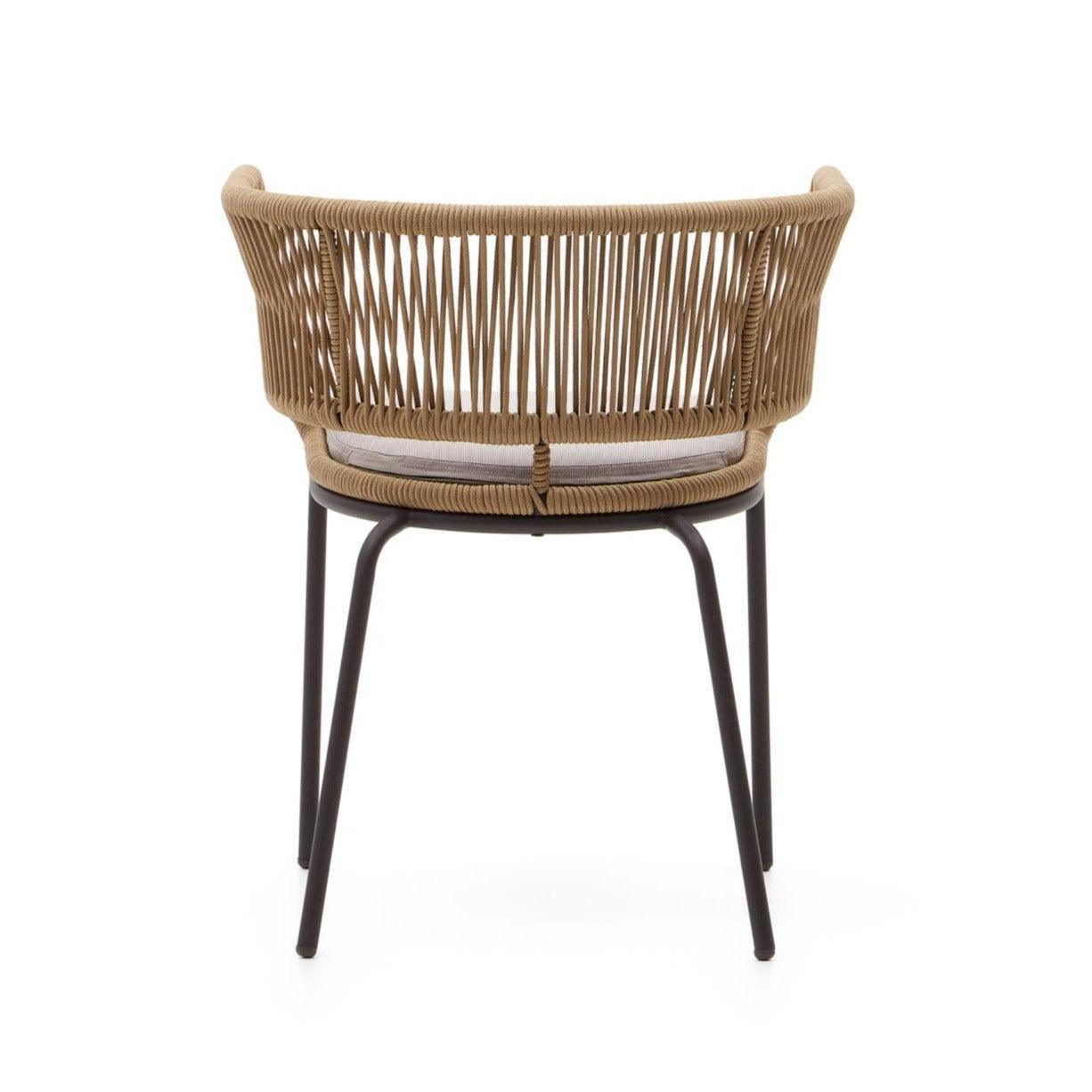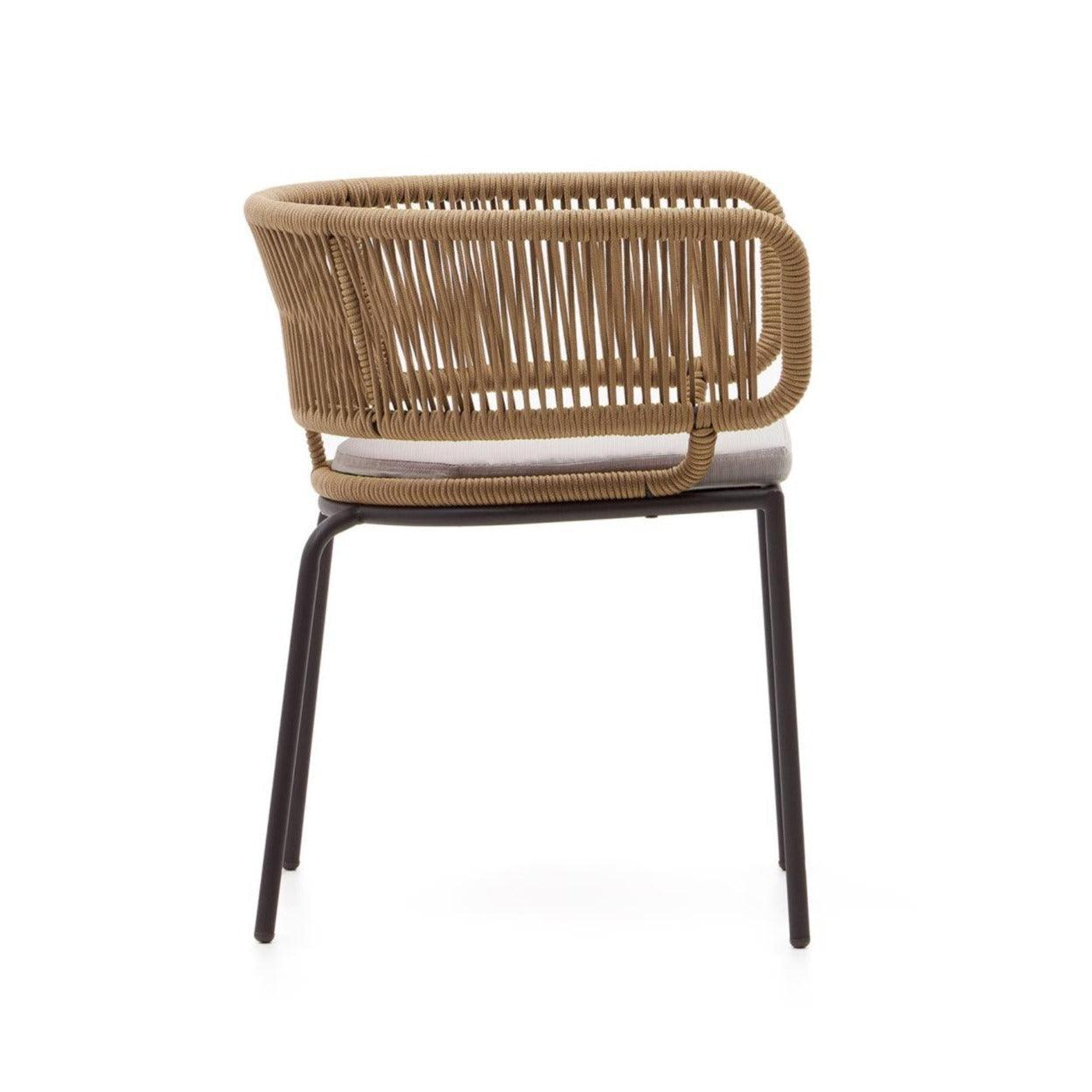 De uniciteit van de stoel Nadin ligt in de handgemaakte basis van band en de rugleuning van touw, wat het een bijzonder karakter geeft en ervoor zorgt dat elk exemplaar uniek is. De handgeweven omhulsel van touw is een uitdrukking van ambachtelijke tradities die door de tijd heen worden doorgegeven, waardoor het meubel niet alleen functionaliteit, maar ook een ziel krijgt.