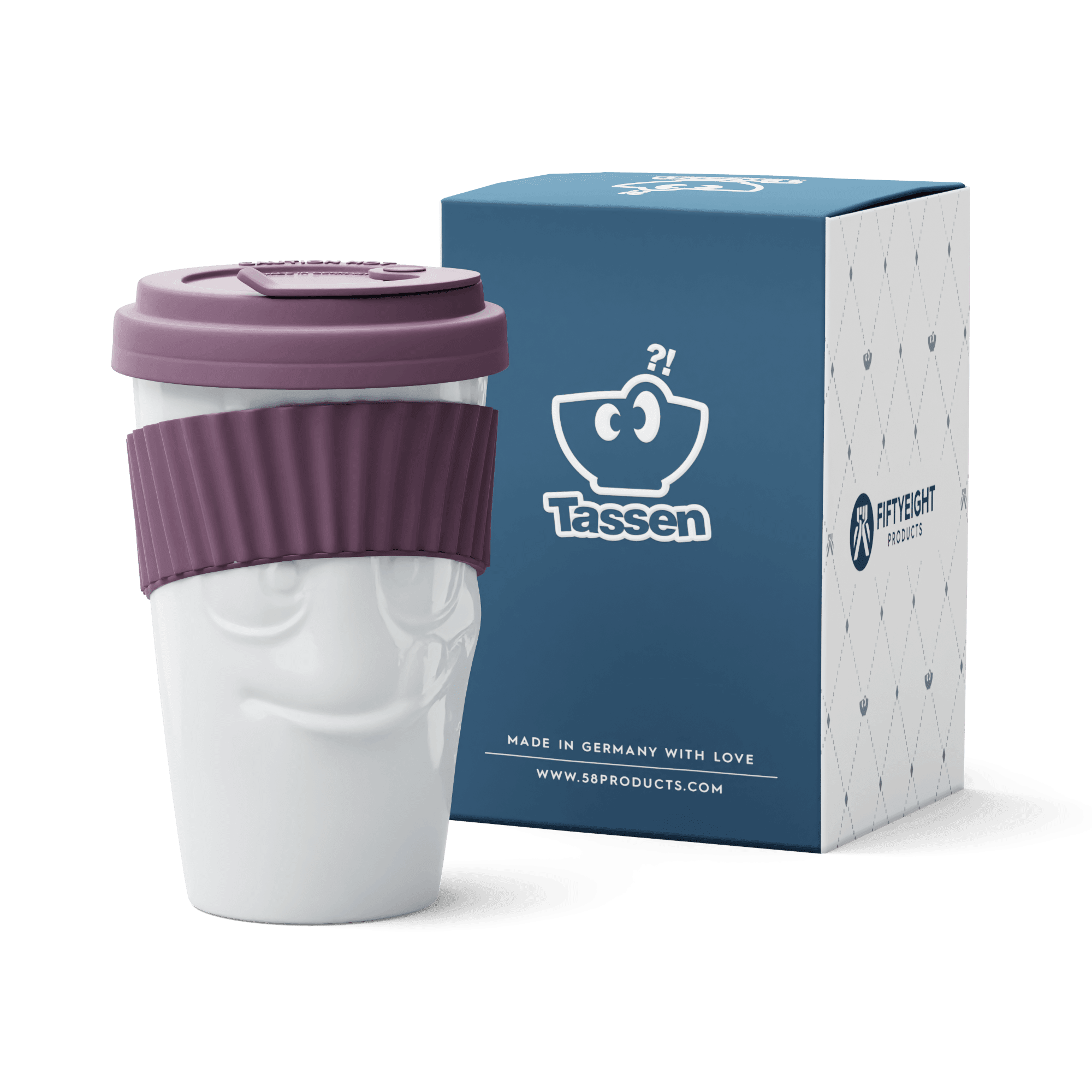 Beker met deksel Tasty in de kleur wit met een intensieve amarantaccent is een praktisch vat dat de hongerige geest verrast. Deze beker is de ideale reisgenoot.