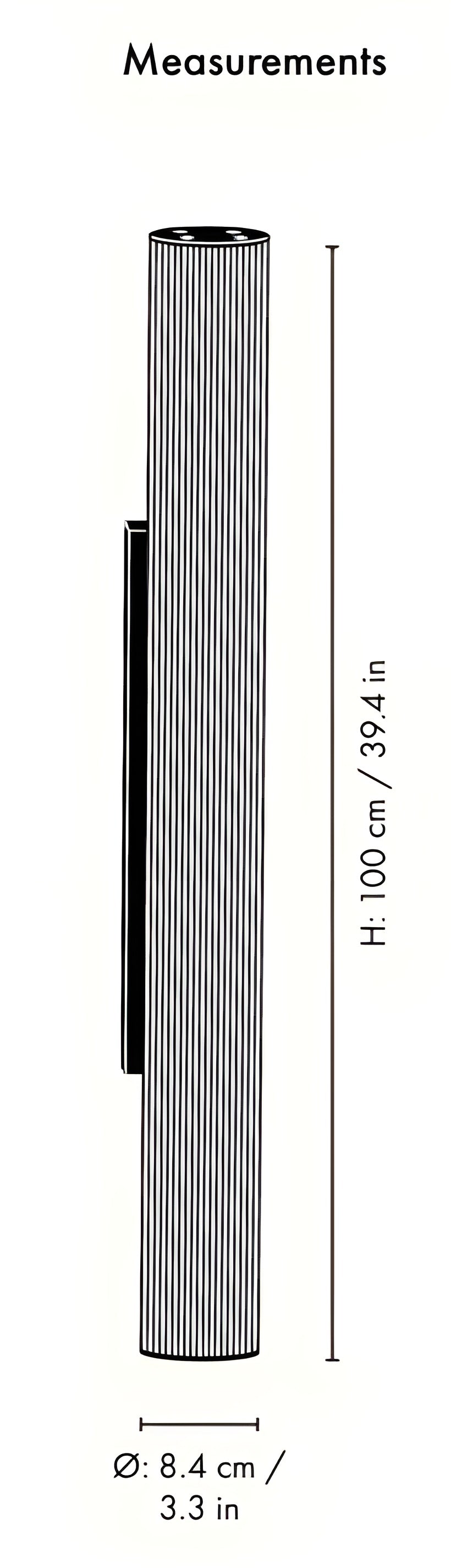 Wandlamp Vuelta Long in glanzende uitvoering is een elegante combinatie van structurele verfijning en modern minimalisme. De cilindrische kap van opaalglas met een golvende oppervlakte en glanzende afwerking geeft de ruimte een subtiele uitstraling, terwijl de details van roestvrij staal de moderne stijl benadrukken. De geïntegreerde LED-lichtbron straalt zacht, diffuus licht uit dat kan worden geregeld met een afstandsbediening met dimfunctie en geheugen.