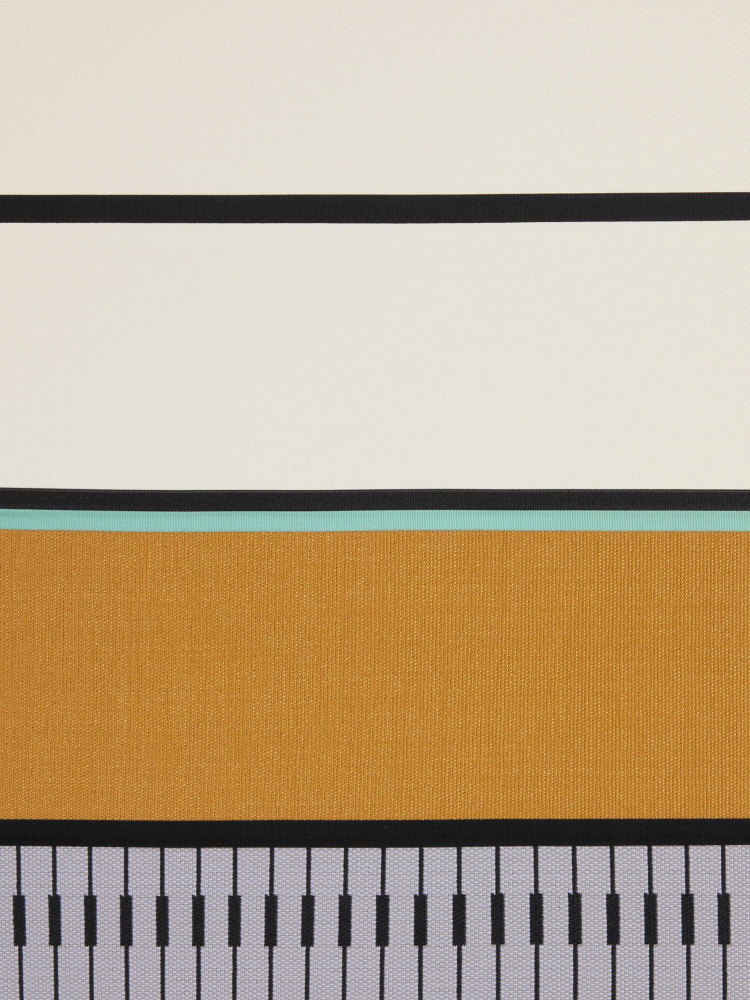 Vloerlamp Calypso is een gedurfde keuze voor liefhebbers van interieurexperimenten en interessant design. Calypso is een collectie lampen geïnspireerd op de art déco periode, met stoffen waarvan de texturen en geometrische patronen in zwart en wit vermengd zijn met heldere kleuren geïnspireerd door de cultuur van Zuid-Amerika en de tropen, wat een zeer origineel effect oplevert. Samen met andere lampen uit deze collectie creëert u unieke arrangementen.