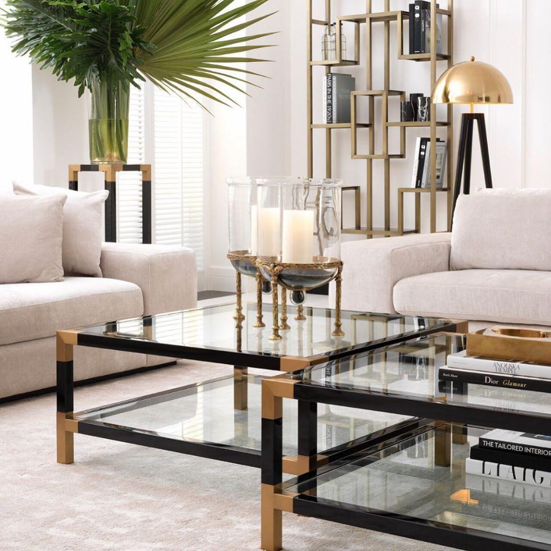 Vloerlamp drievoudig COYOTE goud met zwarte voet