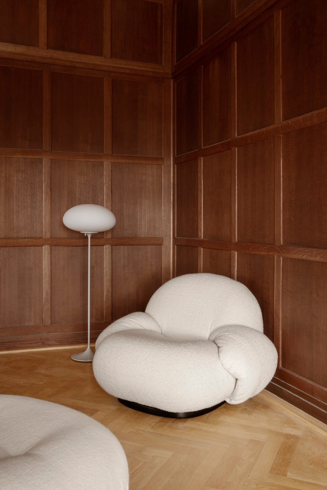Heruitgegeven door GUBI na bijna 50 jaar, blijft de moderne versie van Stemlite trouw aan het origineel – met als enige verschil dat ze voldoet aan de moderne veiligheidsnormen dankzij de toegevoegde ballast in de voet. De elegante vorm die doet denken aan de steel van een tulp en de matte, geblazen kap van melkglas creëren een tijdloze compositie met subtiel, diffuus licht.