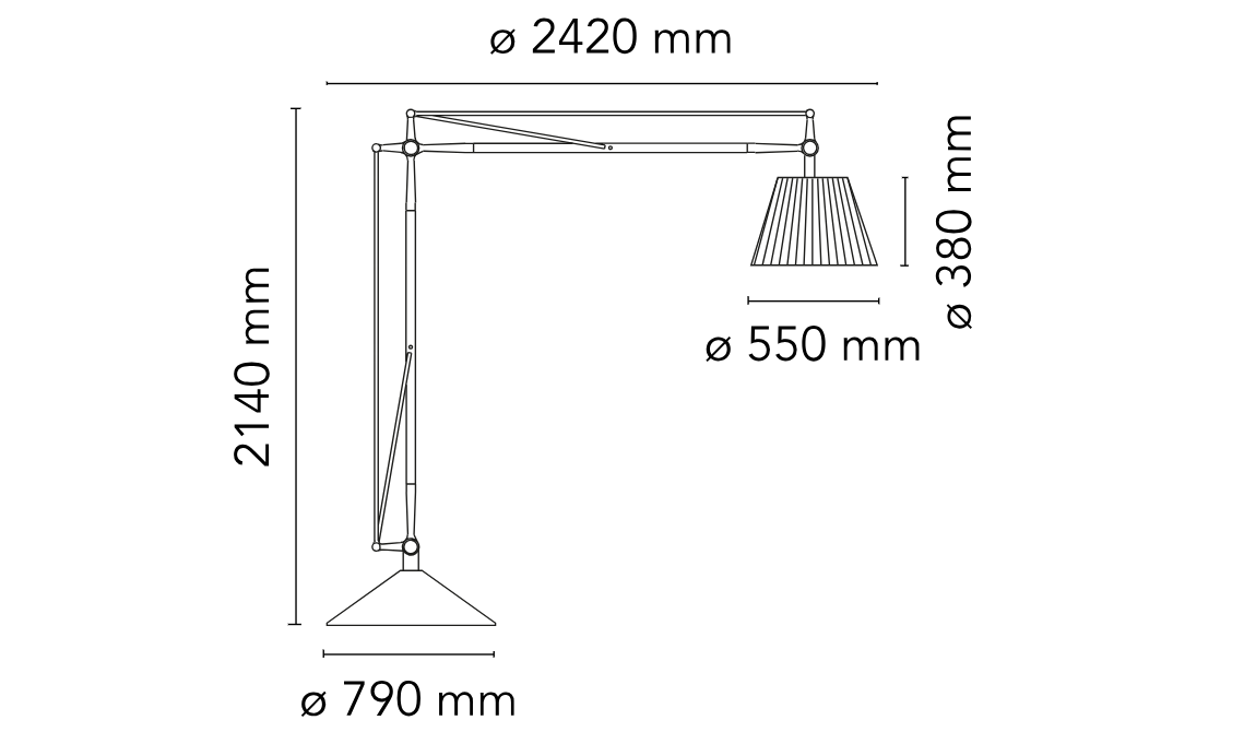 De stabiele, verfijnde constructie steunt op aluminium armen, roestvrijstalen veren en een stevige basis, wat de technische vakmanschap van het ontwerp benadrukt. De elektronische dimmer maakt het mogelijk om de lichtsterkte aan te passen en deze af te stemmen op de stemming of het tijdstip van de dag. Dit is een lamp die zowel een verlichtende als decoratieve functie vervult, en die een rustige elegantie en licht van hoge kwaliteit in uw interieur brengt.