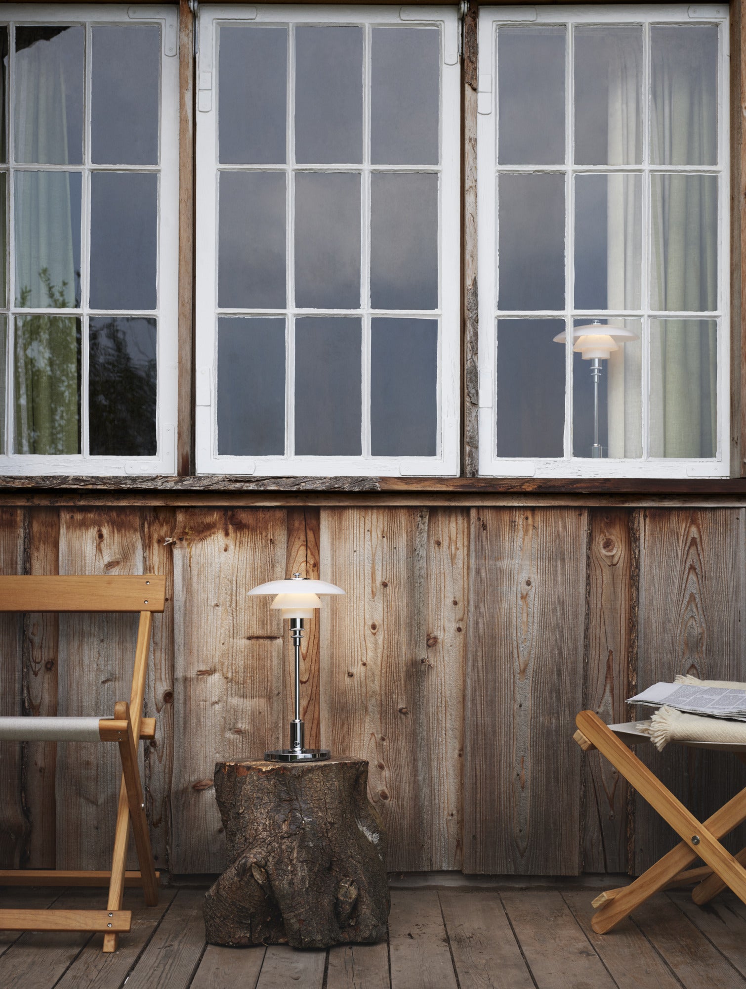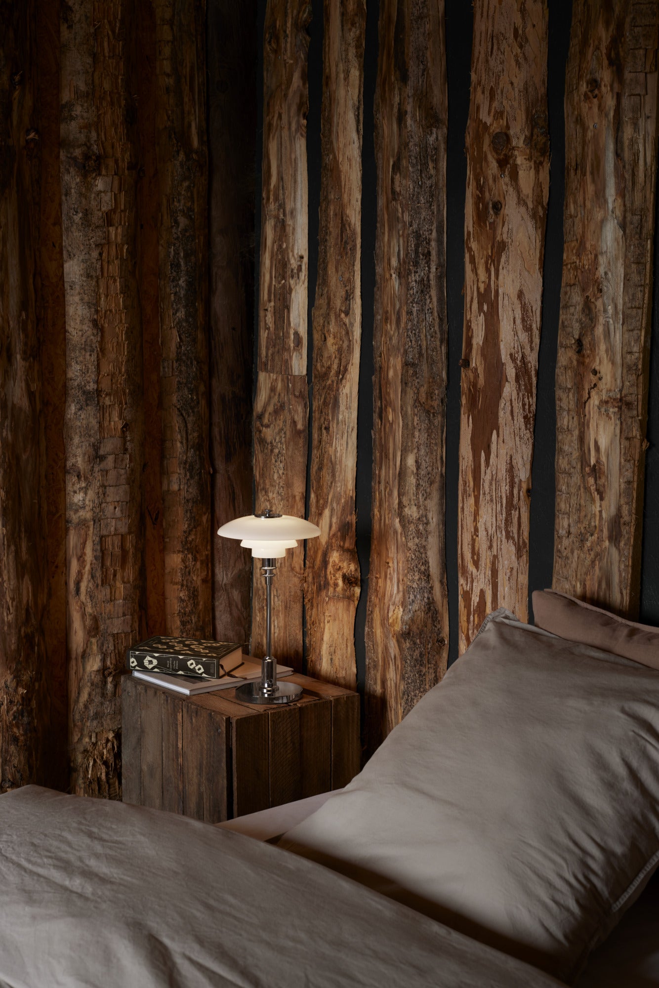 De kappen van geblazen, driedelig opaalglas stralen zacht, diffuus licht uit met een warme tint. De Dim-to-Warm functie maakt een vloeiende overgang van neutraal naar een warmere tint mogelijk tijdens het dimmen, wat helpt om een uitzonderlijk gezellige sfeer te creëren. Draagbare lamp PH 2/1 combineert klassiek Deens design met moderne LED-technologie en gebruiksgemak – ideaal voor een nachtkastje, plank, vensterbank of terras.