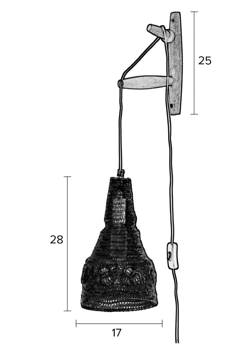 Wandlamp Alen is een stijlvolle en elegante verlichting die een unieke sfeer in elke ruimte brengt. Gemaakt van hoogwaardig ijzer en mango-hout, garandeert de lamp een stevige constructie en duurzaamheid. De natuurlijke kleur past perfect bij verschillende interieurstijlen en voegt een gezellige en aangename toets toe. Lamp Alen is de ideale keuze voor wie de combinatie van modern design met natuurlijke materialen waardeert, en zo een warme en stijlvolle ambiance in huis creëert.