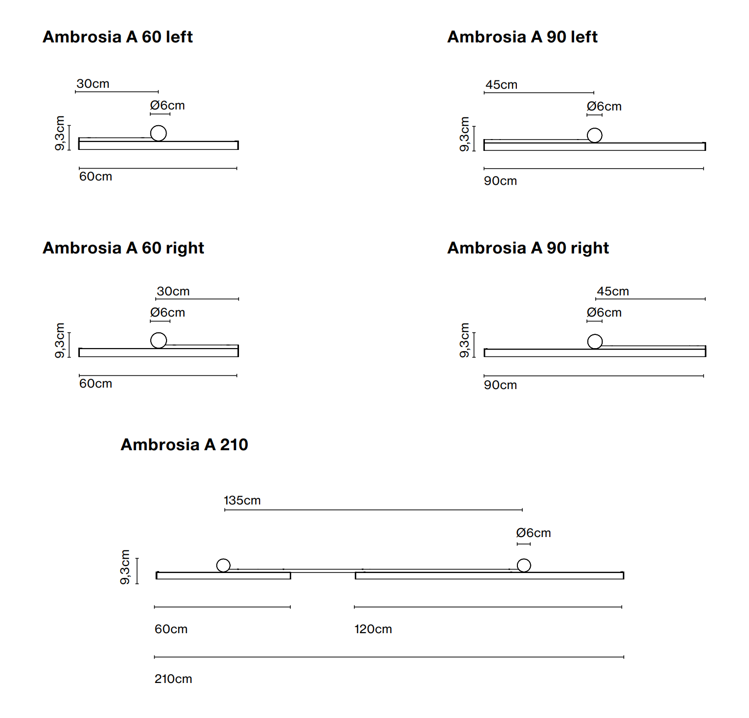 Beschikbaar in drie lengtes - 60, 90 en 210 cm - kan zowel horizontaal als verticaal worden gemonteerd. 24V LED SMD is beschikbaar in drie warme kleurtemperaturen, 2200 K, 2700 K en 3000 K, wat aanpassing van de intensiteit mogelijk maakt.