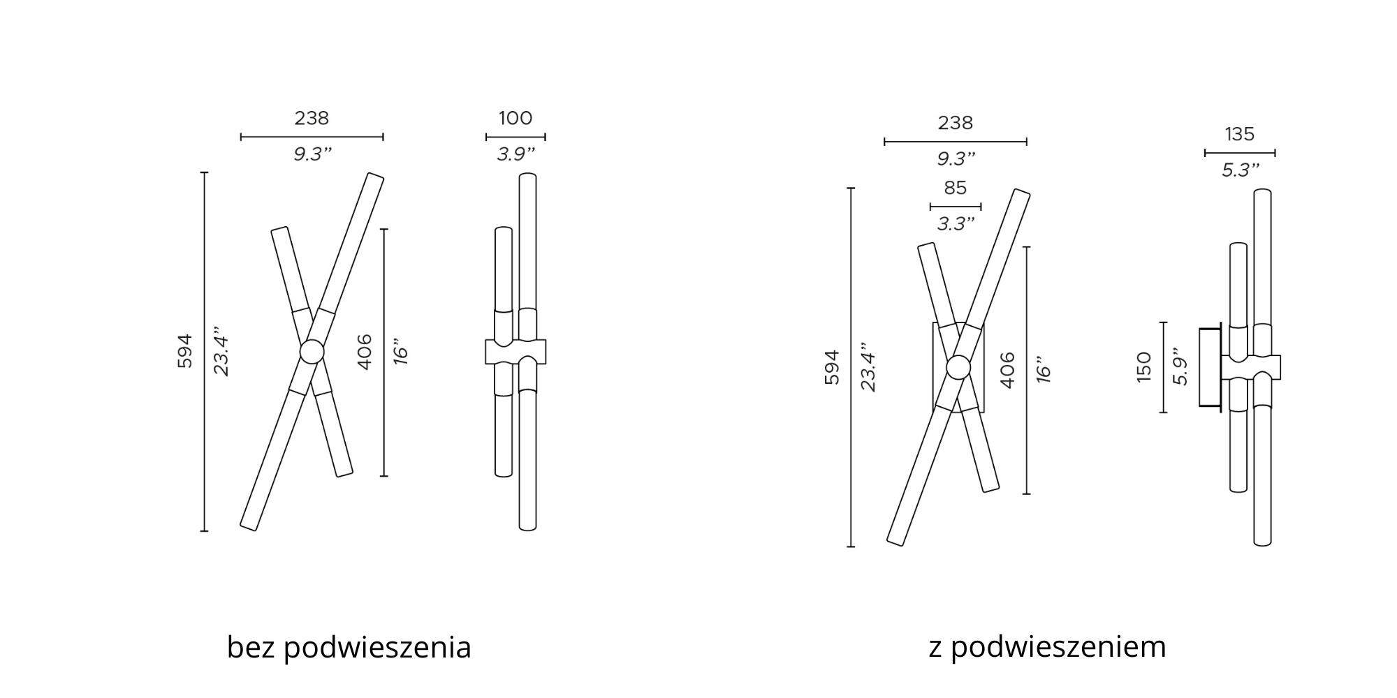 Wandlamp Bianca is beschikbaar in een afwerking in goud en mat zwart. Bianca is ook verkrijgbaar in een versie met ophangsystemen.