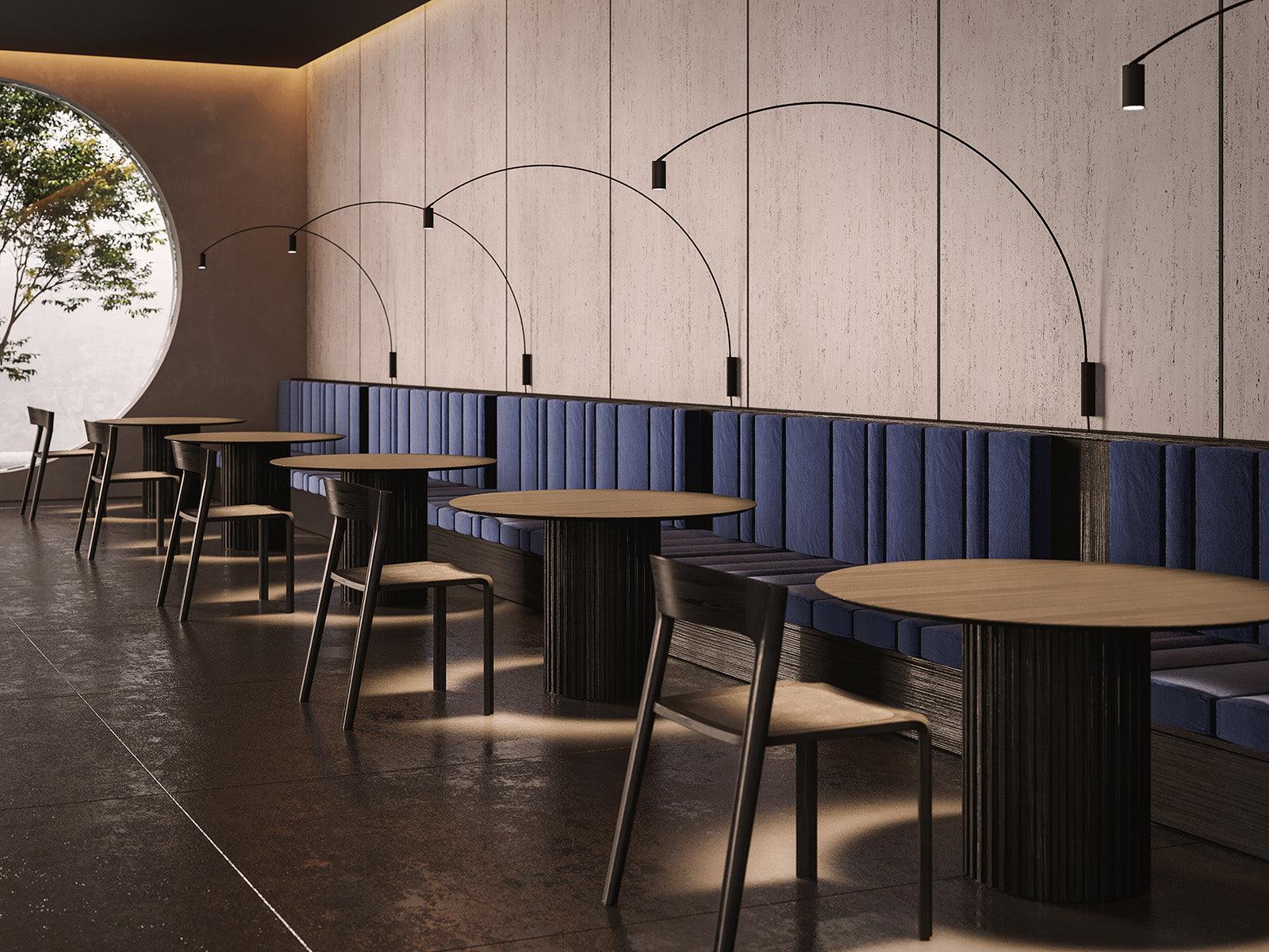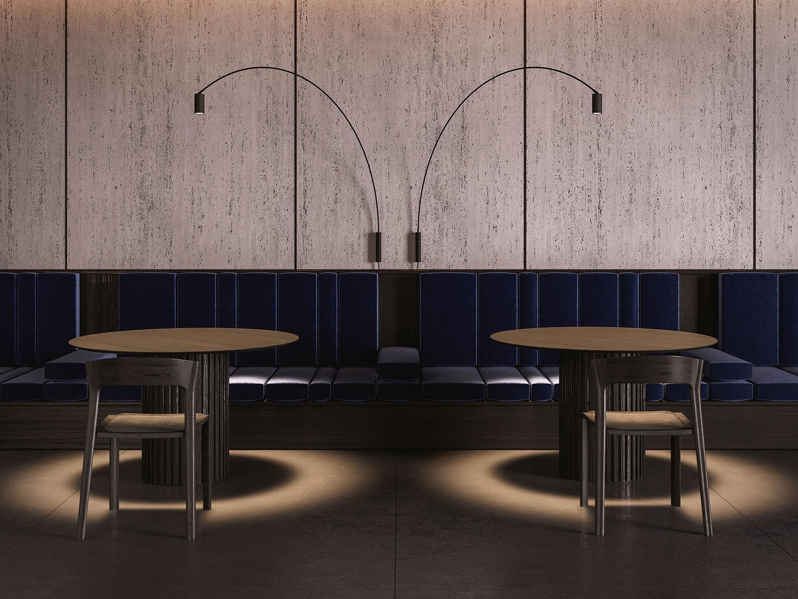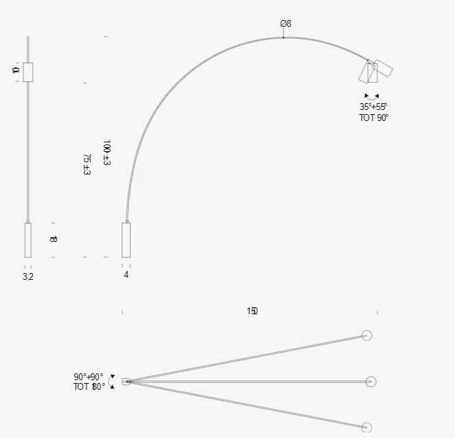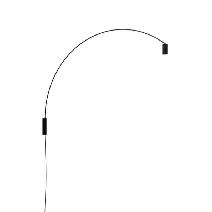 Fox naar wandlamp met een essentiële esthetiek en pure functionaliteit. De draaibare boog, gemaakt van matzwart, gepoedercoat staal, biedt een breed scala aan beweging, waardoor interactie met de ruimte en decoratie mogelijk is. De cilindrische reflector, optioneel uitgerust met een antireflectiefilter, maakt het mogelijk om het licht naar behoefte te richten. De lichtstraal is warm en diffuus, wat een aangename sfeer in elk interieur creëert.