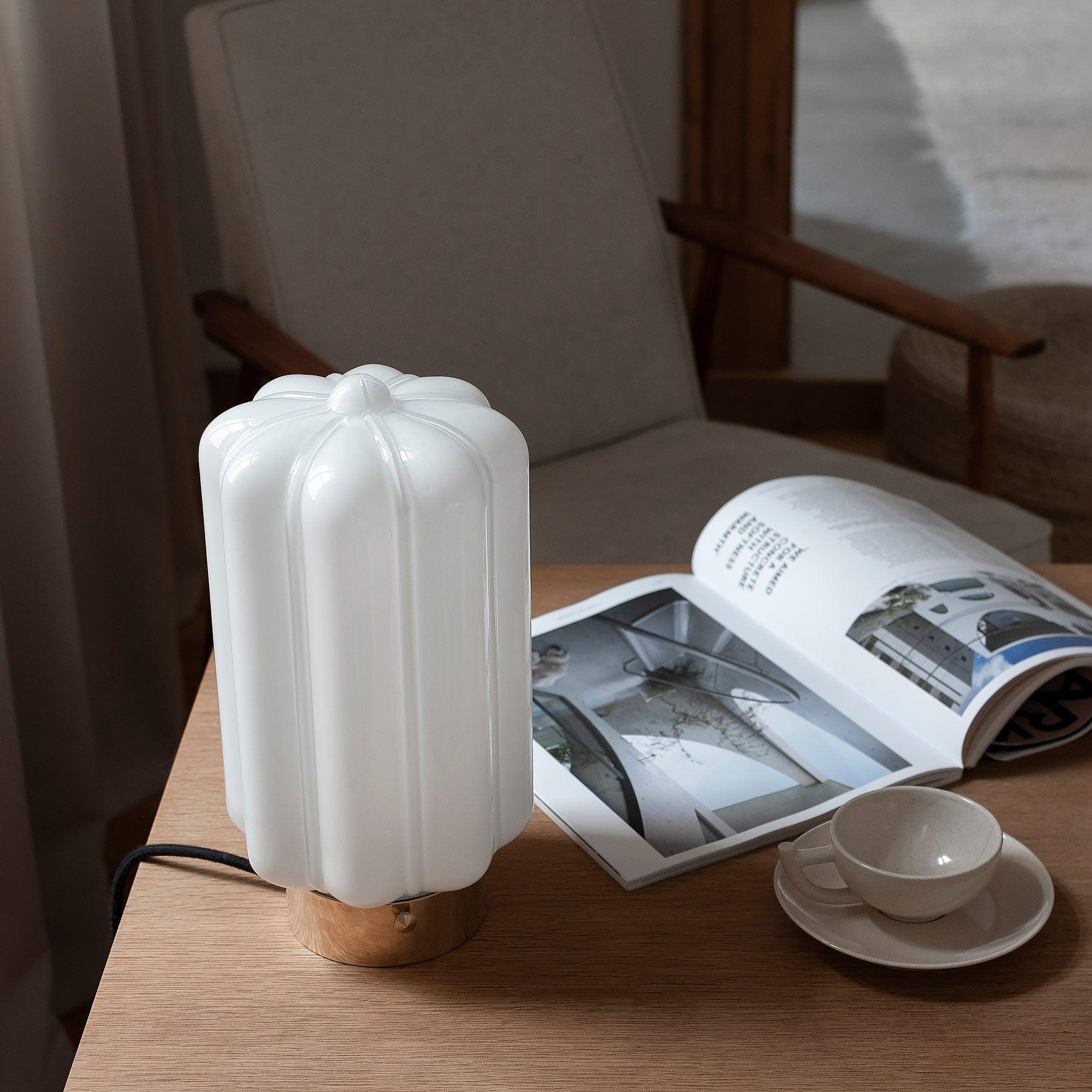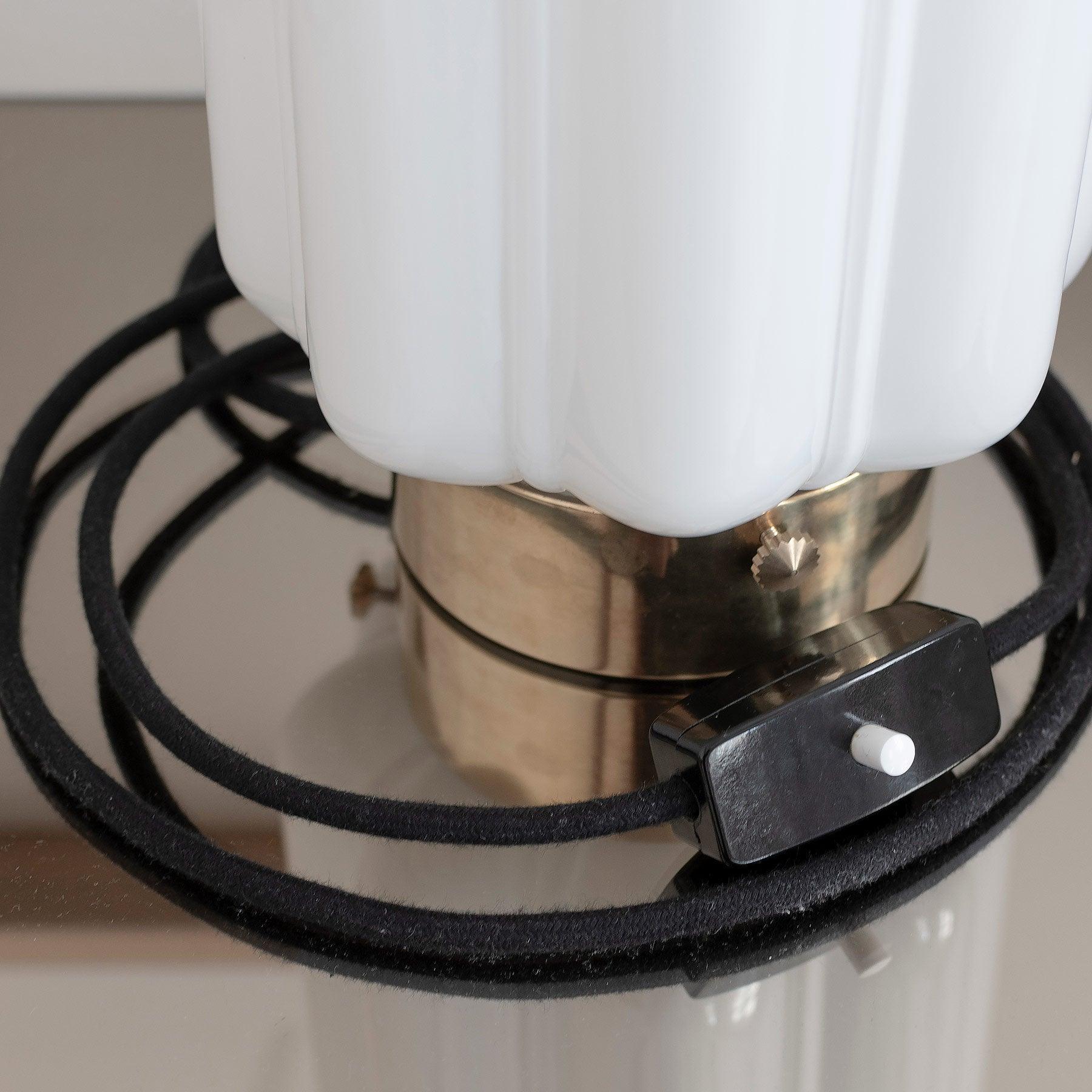 De basis van de lamp is gemaakt van natuurlijk, massief messing, dat in de loop der tijd een charmante patina krijgt, waardoor de lamp een uniek karakter krijgt. Deco is ook verkrijgbaar in een nikkelversie, wat een opvallende, zilveren afwerking aan het interieur geeft. De voedingskabel van de lamp heeft een natuurlijke, zachte katoenen omhulsel, wat een mooie aanvulling op het geheel vormt. De schakelaar is daarentegen gemaakt van de hoogste kwaliteit bakeliet, uitgerust met een design, contrasterende knop.
