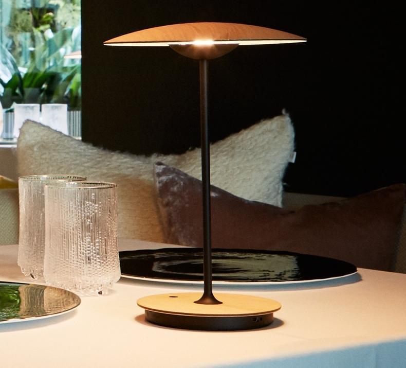 Met de lithium-ionbatterij biedt de nieuwe draagbare tafellamp van Ginger de mogelijkheid om ruimtes onafhankelijk te verlichten met volledige vrijheid en zonder de noodzaak van kabels.