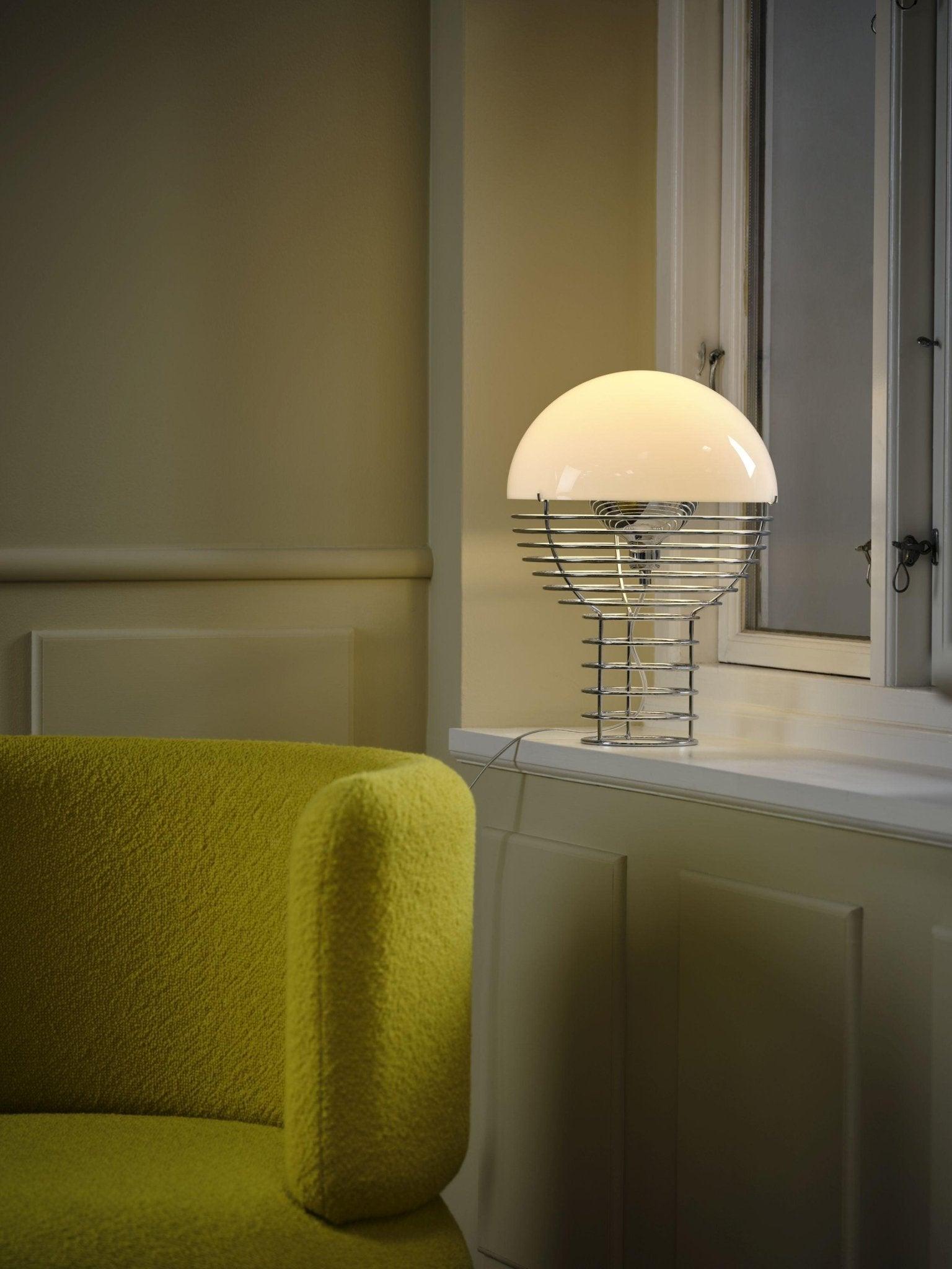 Tafellamp Wire van het merk Verpan is ontworpen door de bekende Deense ontwerper Verner Panton en is een voorbeeld van modern design met een minimalistisch karakter.