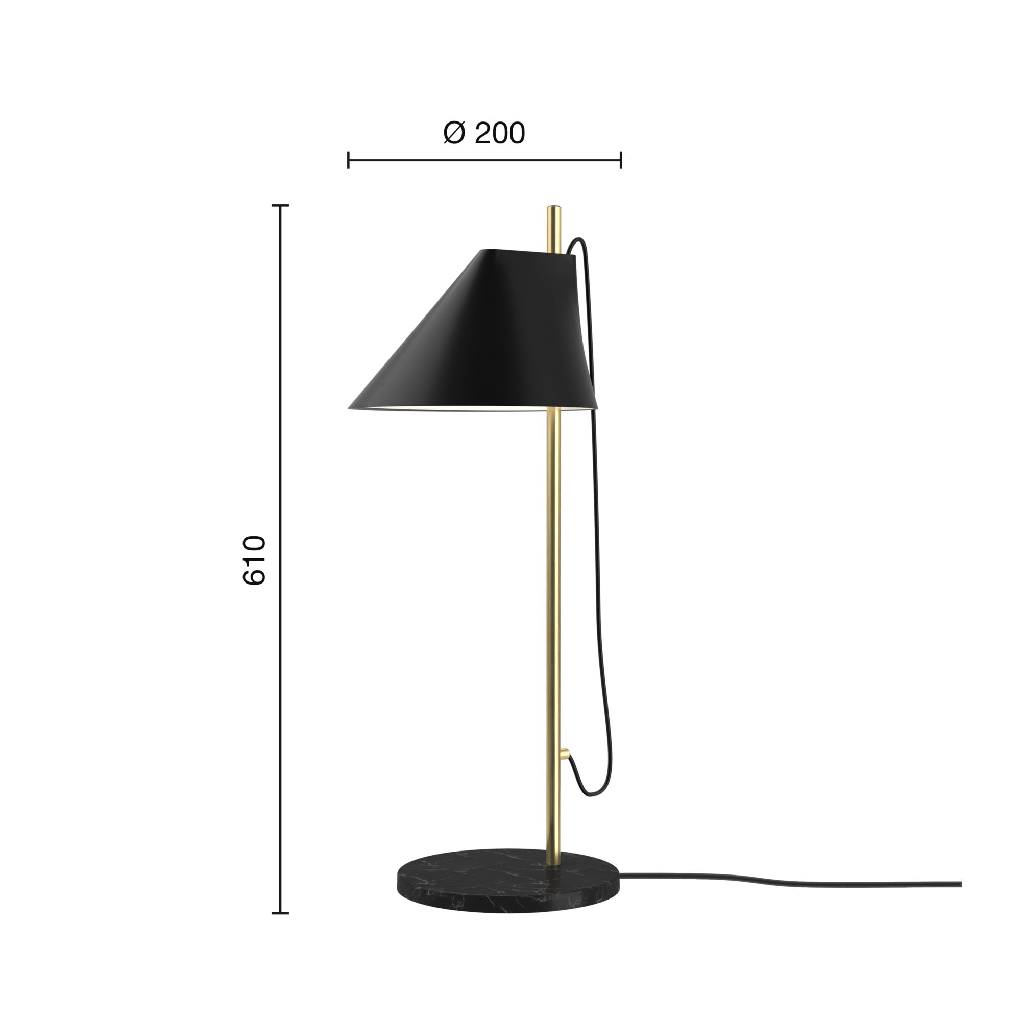 Tafellamp YUH zwart met messing voet