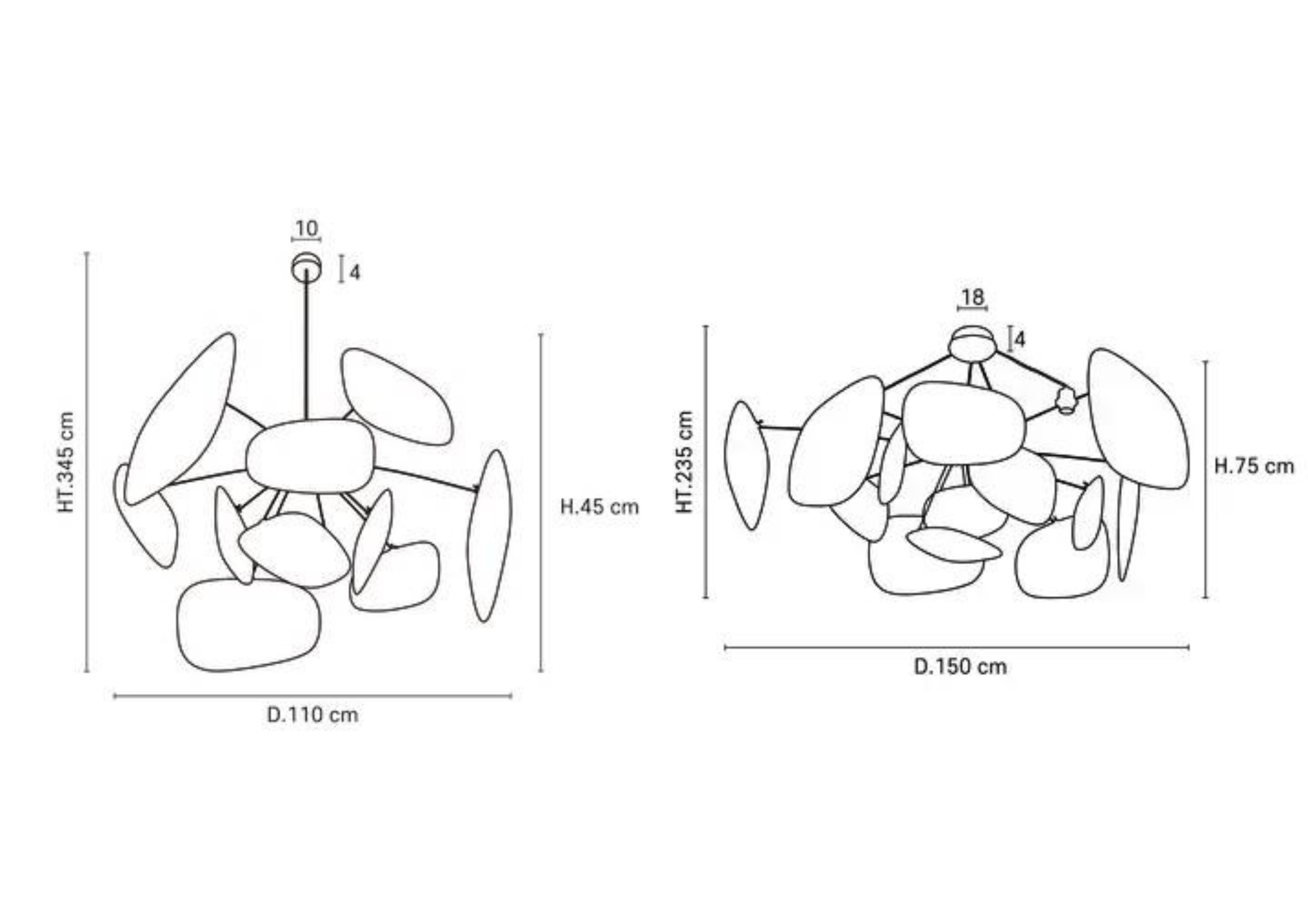 Deze 10 of 13 schermen van linnen geven de lamp een bijzondere uitstraling, terwijl ze het licht op een subtiele en aangename manier verspreiden. Bovendien maken de textiele kabels en het metalen dak, dat kan worden aangepast aan het DCL-systeem, de installatie en afstelling van de lamp eenvoudig volgens uw wensen.