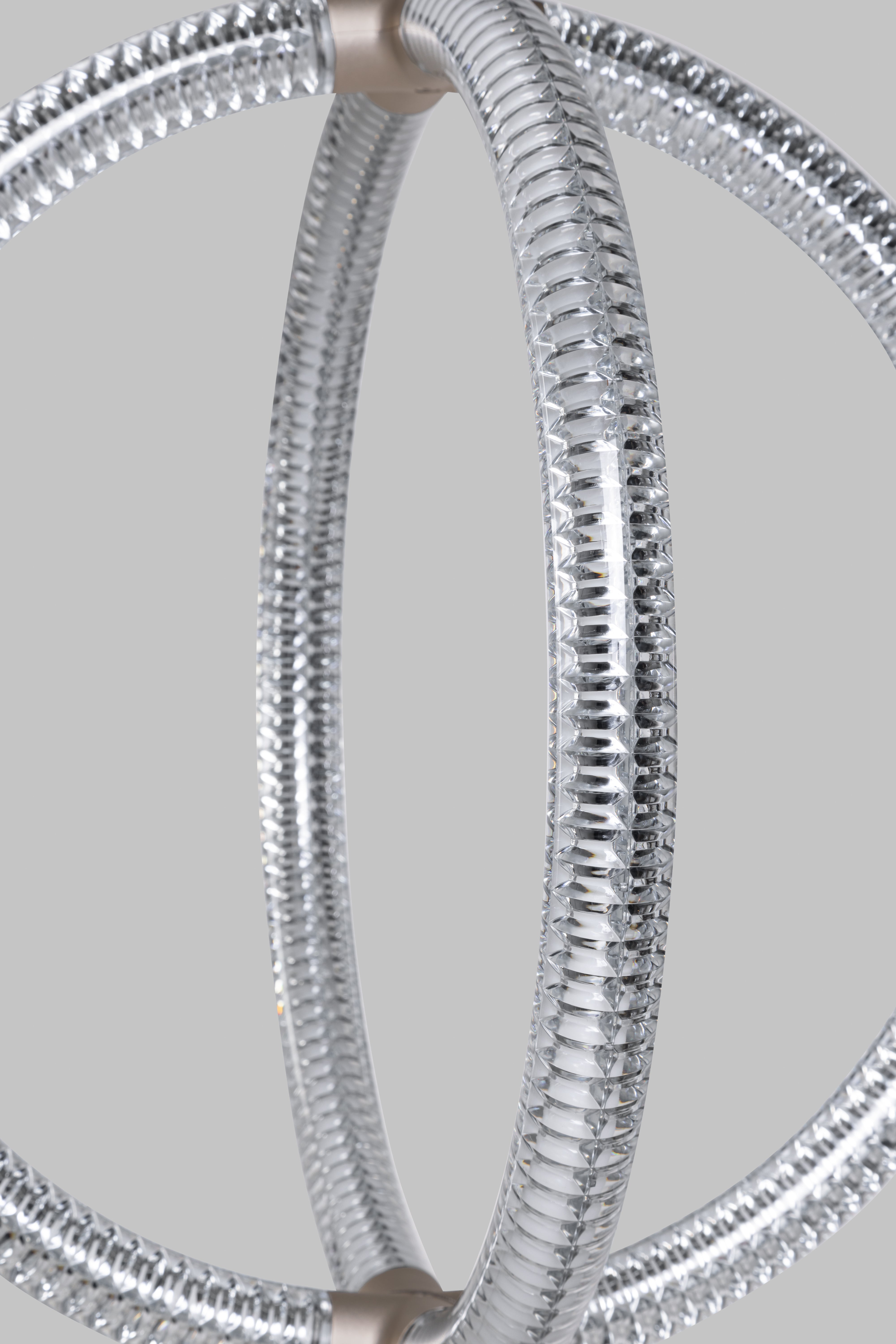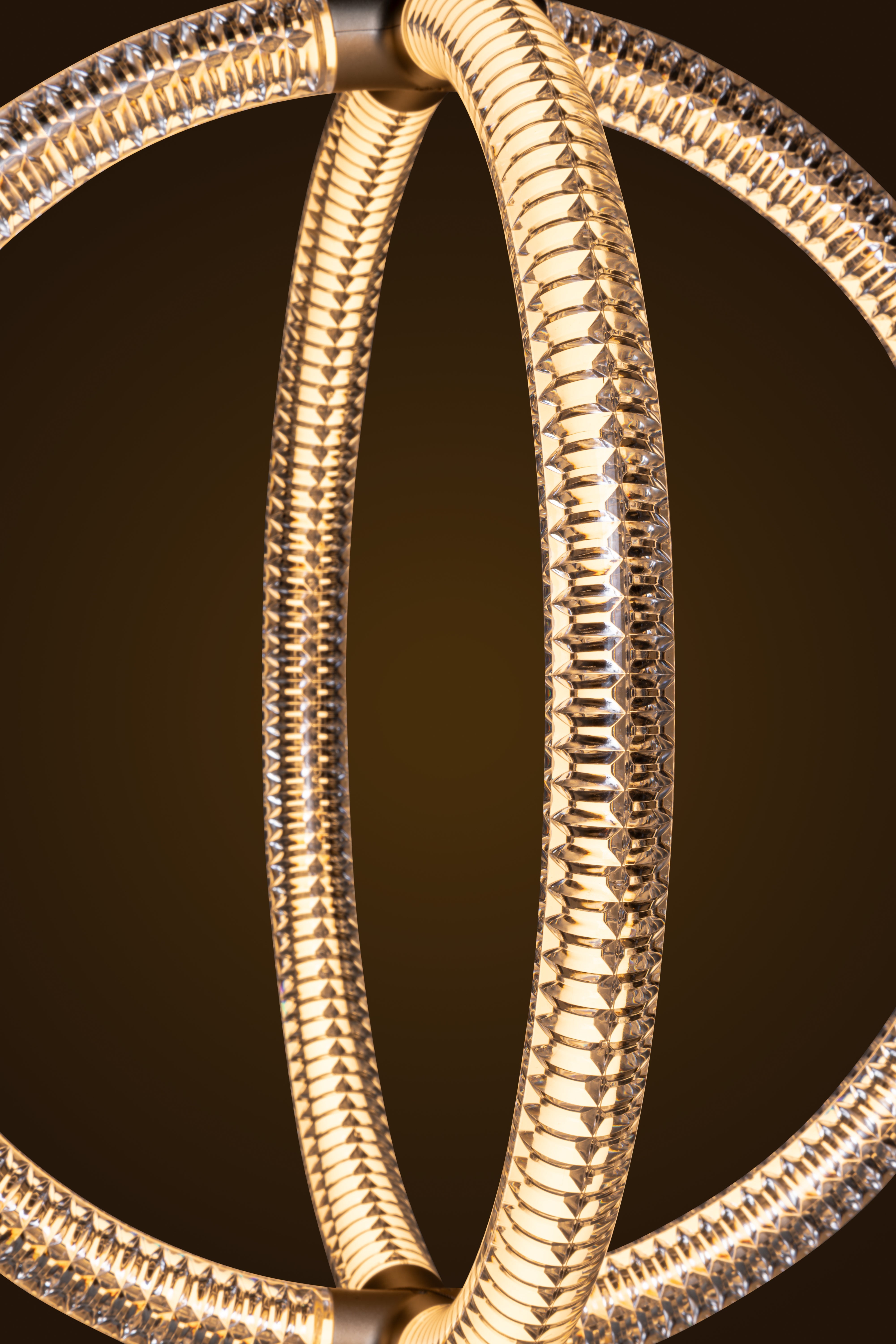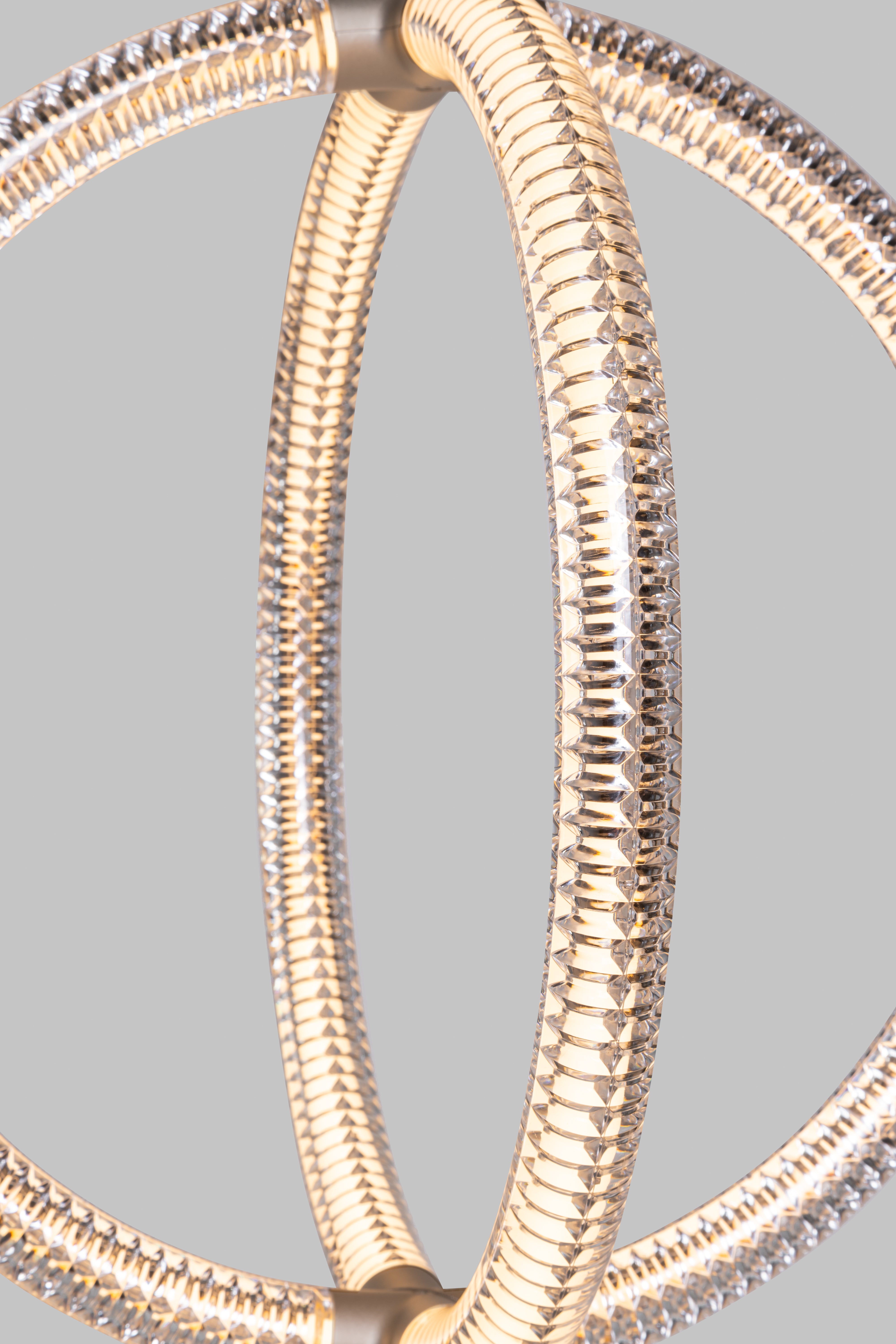 Hanglamp Luminora is een modern kunstwerk dat verfijnde esthetiek en geavanceerde technologie combineert. Het unieke ontwerp verwijst naar de elegantie van Murano-glas en benadrukt de symmetrie geïnspireerd op de gulden snede. Transparante LED-buizen, omringd door een vakkundig ontworpen diamanten patroon in de vorm van een "v", creëren een hypnotiserend spel van licht en schaduw.