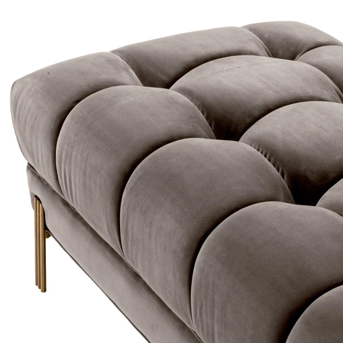 Bank Sienna is een echte parel onder de meubels, doordacht in elk detail en ontworpen voor degenen die een unieke combinatie van functionaliteit en esthetiek waarderen. De gestoffeerde bekleding van Savona-velours in een zachte grijstint garandeert comfort en klasse, en vormt tegelijkertijd een prachtig uitgebalanceerd contrast met de gouden, elegant gevormde poten.