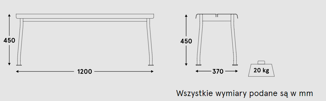 De onderleggers op de poten voorkomen dat het meubilair wegzakt in zachte ondergronden. De matte afwerkingsverf beschermt tegen externe factoren, en het minimalistische ontwerp in harmonieuze kleuren maakt het eenvoudig om de bank aan de rest van de collectie aan te passen. Met een hoogte van 450 mm is het perfect voor salontafels.